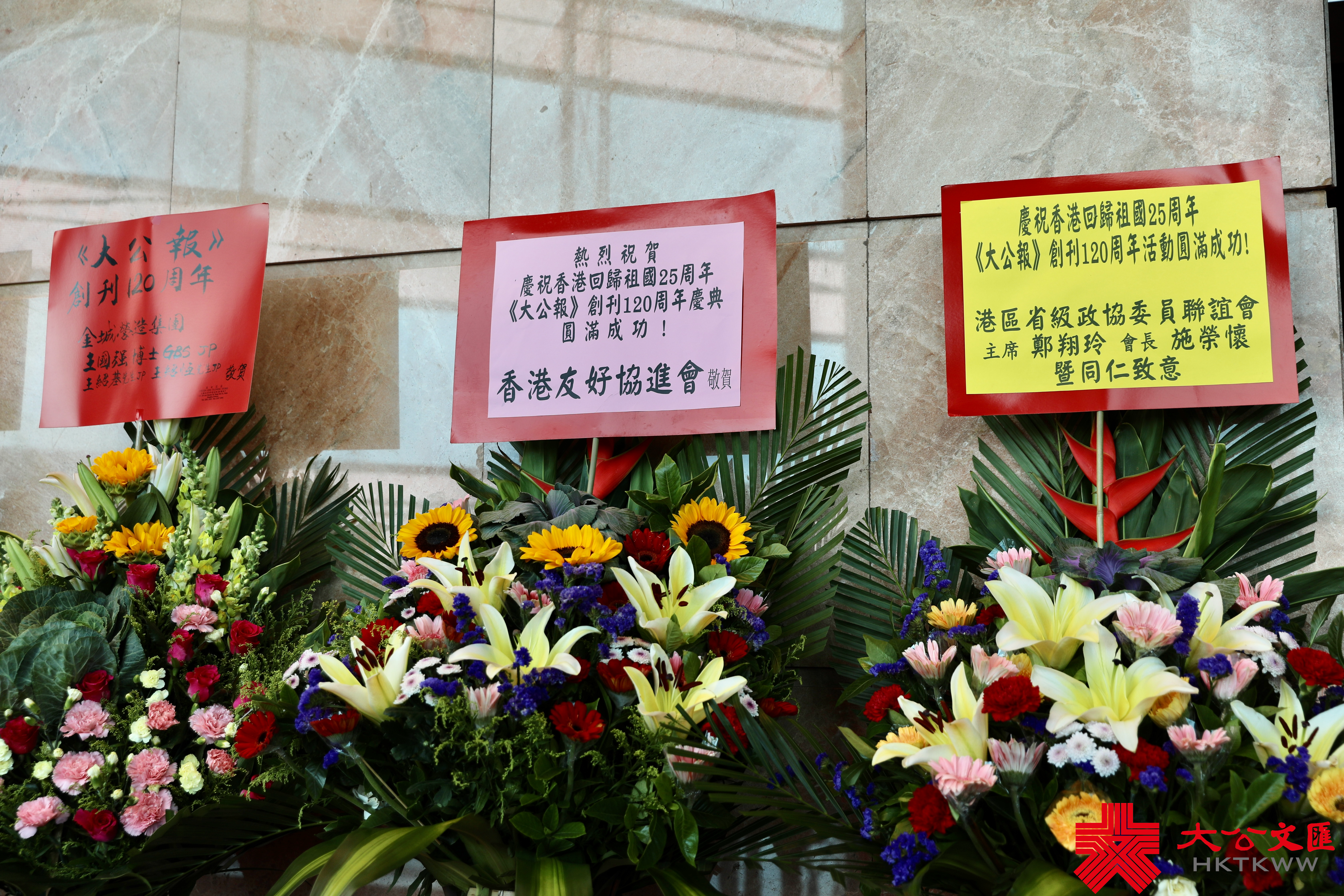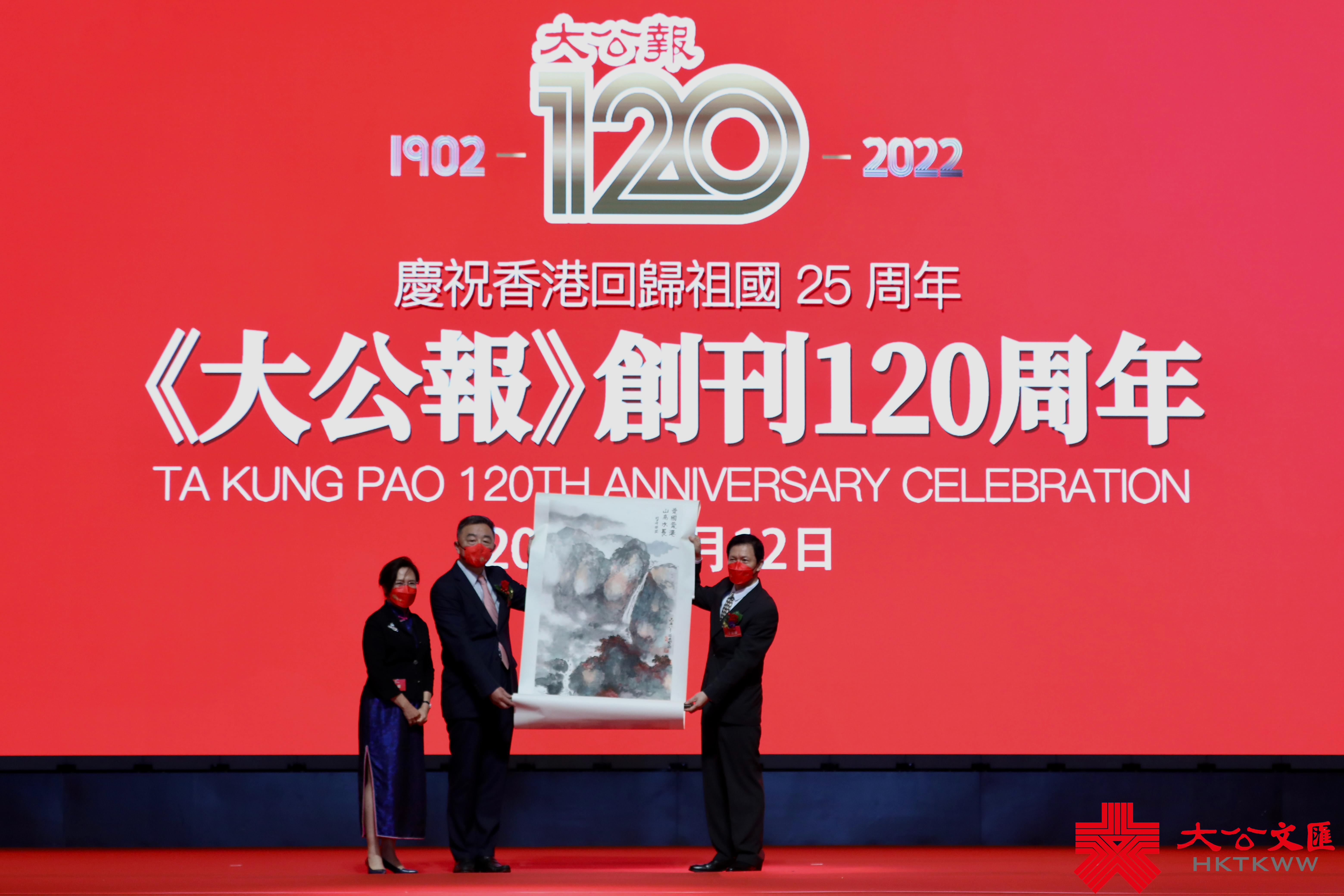 香港大公文匯傳媒集團副董事長兼總編輯李大宏主持慶祝儀式。《大公報》忠實讀者、嶺南畫派傳人黎明先生贈送了他特別創作的山水畫「愛國愛港 山高水長」,集團副董事長姜亞兵、大公報總編輯于世俊代表接收。