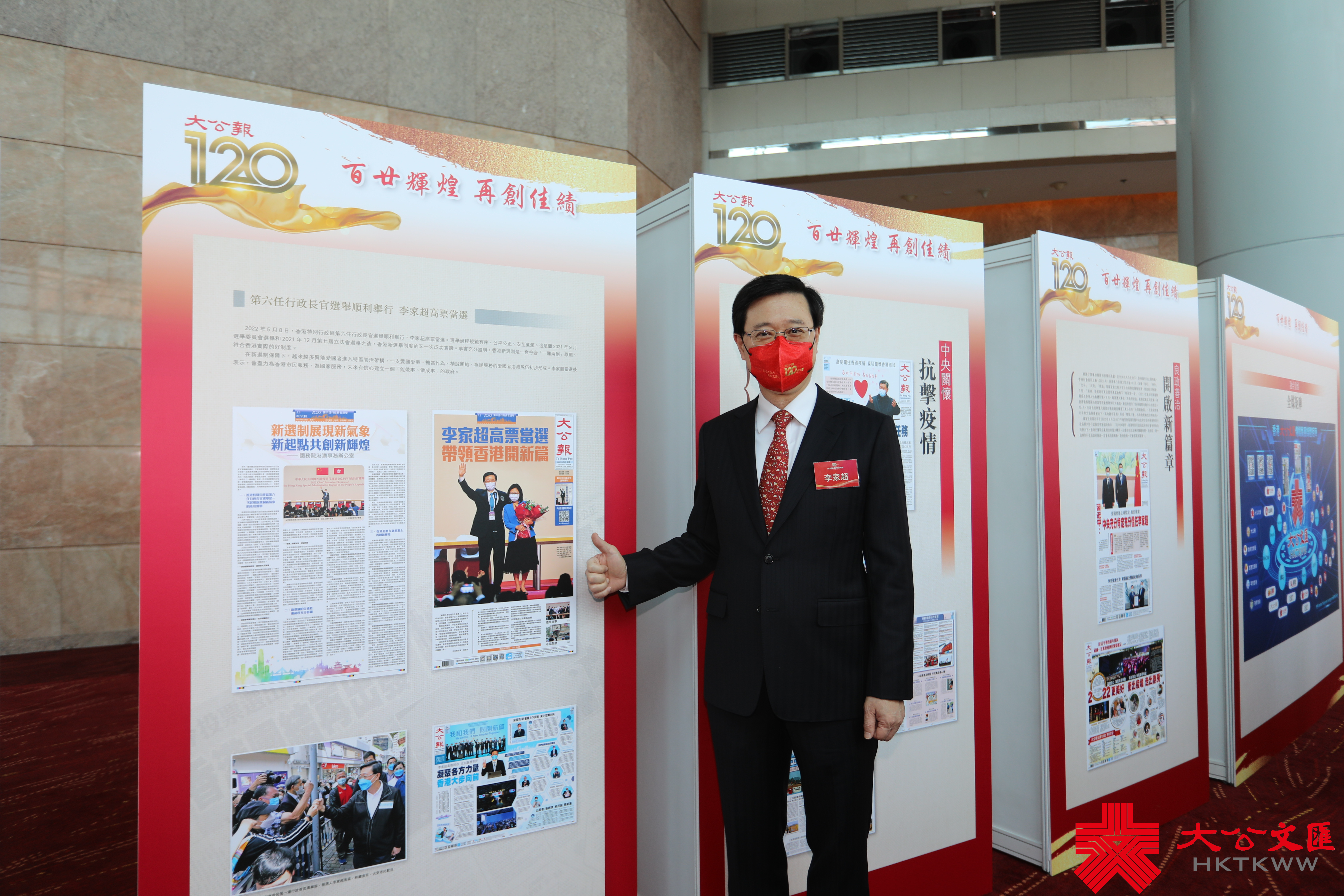 香港特區候任行政長官李家超出席活動致辭時表示,從1902年創辦至今,《大公報》一直秉持「忘己之為大,無私之謂公」的辦報精神,擔當時代見證人的角色,生於憂患,歷經抗戰、新中國成立、改革開放、香港回歸祖國和國家在21世紀騰飛的歷史時刻,走在新聞的最前線,與時代一同前進,可以說翻開《大公報》,看到了中國近代史、現代史。他說,今年是香港回歸祖國25周年,未來五年是香港由治及興的關鍵時刻,深信《大公報》會繼續擔當歷史的見證者,客觀、公正、持平報道「一國兩制」在香港特區的成功實踐。