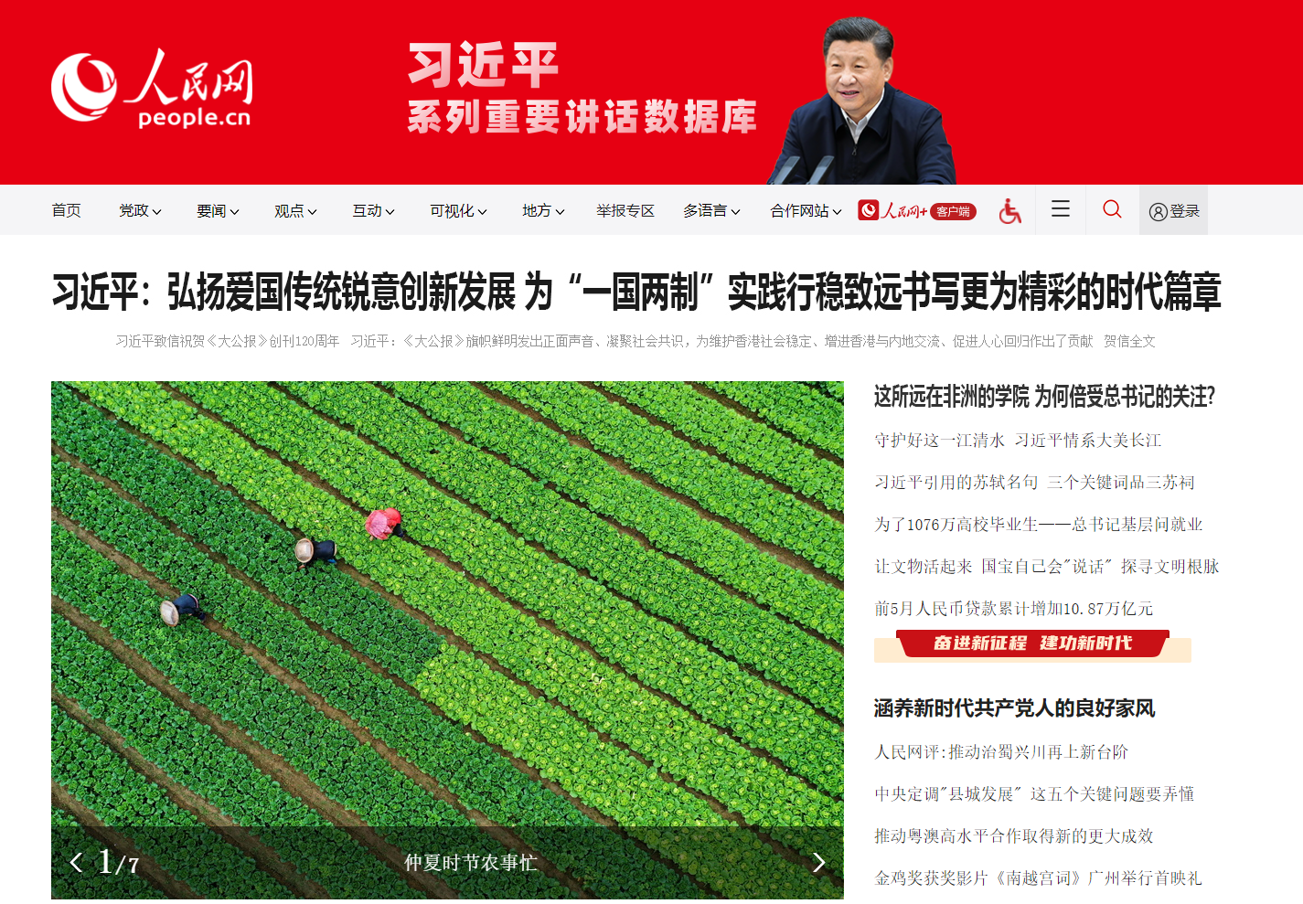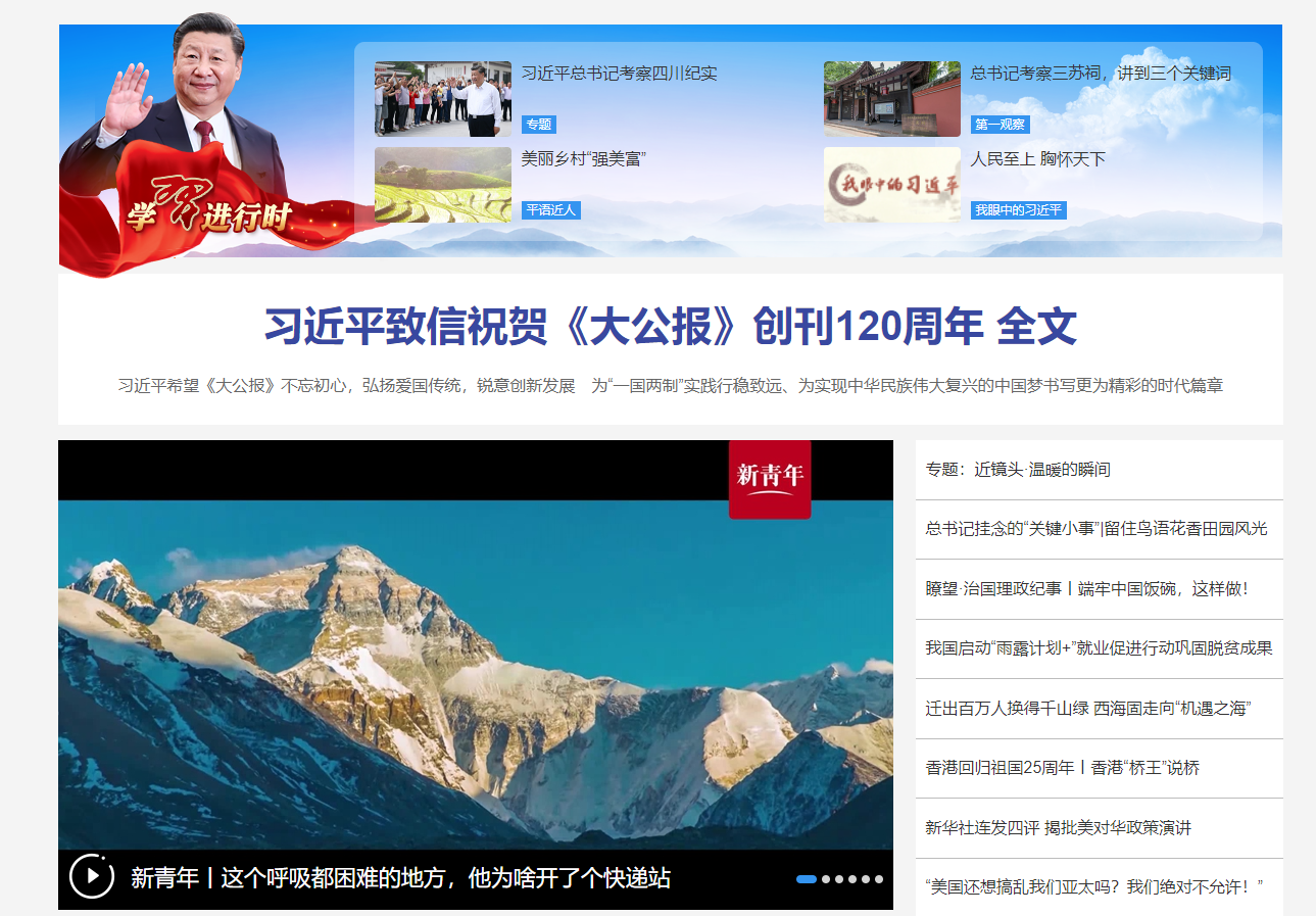 關鍵詞:習近平大公報120周年央媒人民網、新華網、新聞聯播