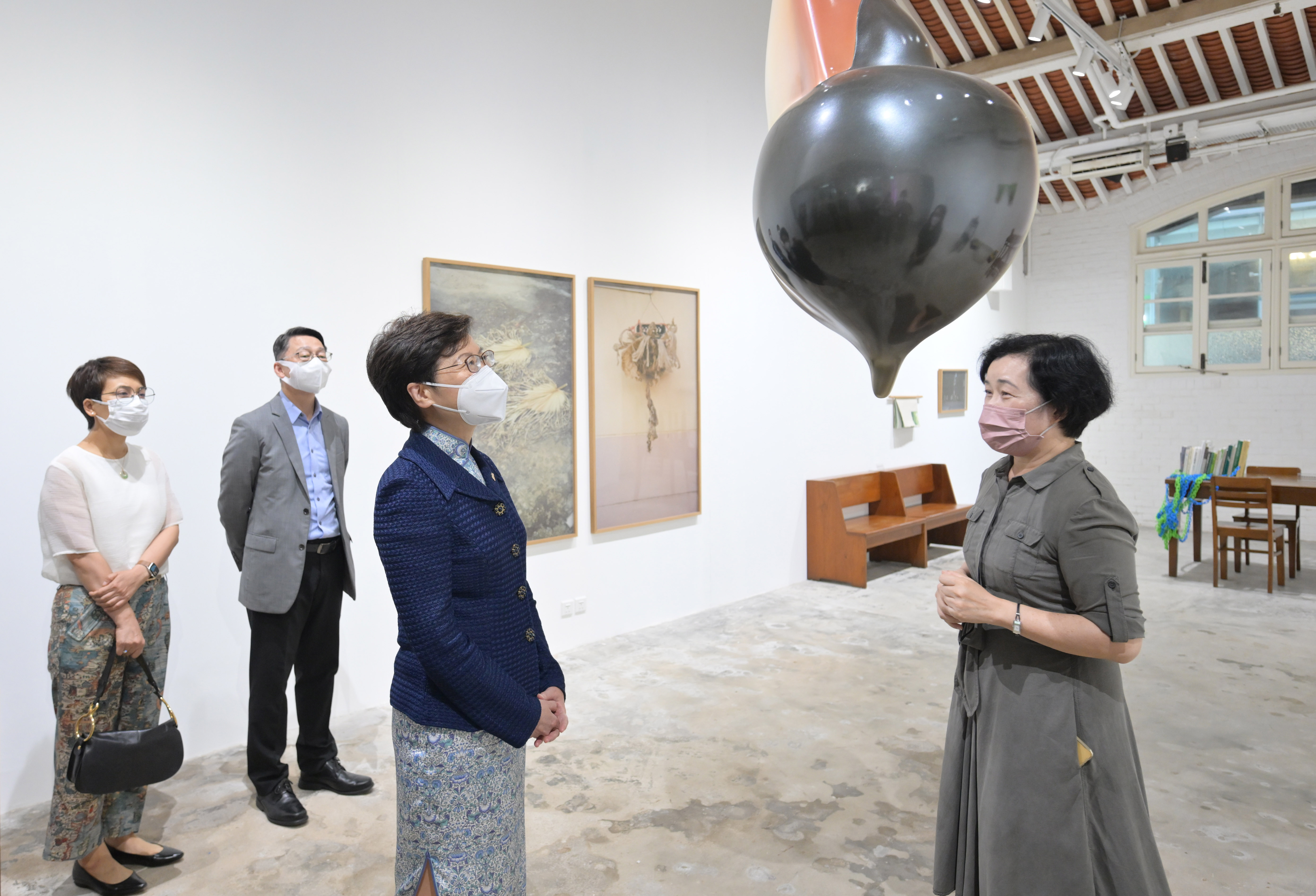 大公文匯全媒體報道,行政長官林鄭月娥今日(13日)到訪擴展後啟用的北角油街實現藝術空間,觀賞該處的藝術項目及其新面貌。