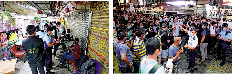 逾百名執法人員昨晚在重慶大廈及美麗都大廈巡查,其間警方一度截查在大廈出入的南亞裔人士及上樓進入多間賓館內調查。行動期間,有組織罪案及三合會調查科總警司黃維到場指揮行動。另外,執法人員亦在附近一帶街頭截查南亞裔漢,並搜查可疑車輛。行動期間雖然正值放工繁忙時段,但秩序良好,附近商店如常營業。