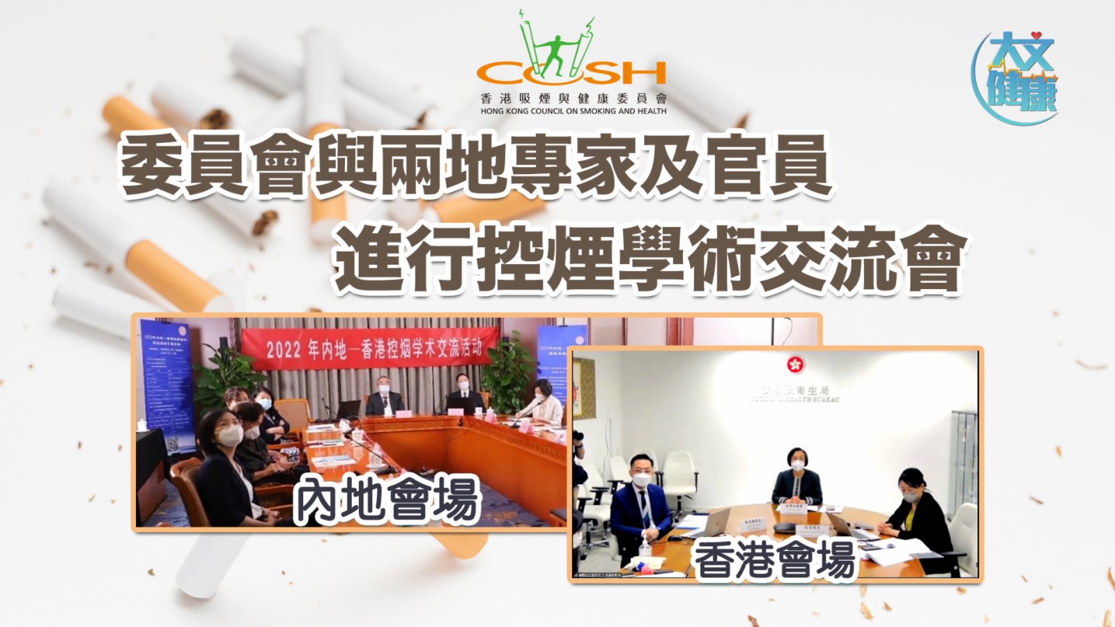 由國家衞生健康委員會港澳台辦及香港特區政府食物及衞生局支持、中國控制吸煙協會及香港特區政府衞生署控煙酒辦公室組織的《2022年內地–香港控煙學術交流活動》於今天(6月10日)舉辦,香港吸煙與健康委員會(委員會)應邀聯同內地和香港公共衞生專家以線上方式參與,憑藉香港四十年的控煙努力,將吸煙率由八十年代初的23.3%持續降低至2021年9.5%,與內地分享控煙經驗,共同推動內地落實《健康中國(2019-2030)》之控煙行動目標。