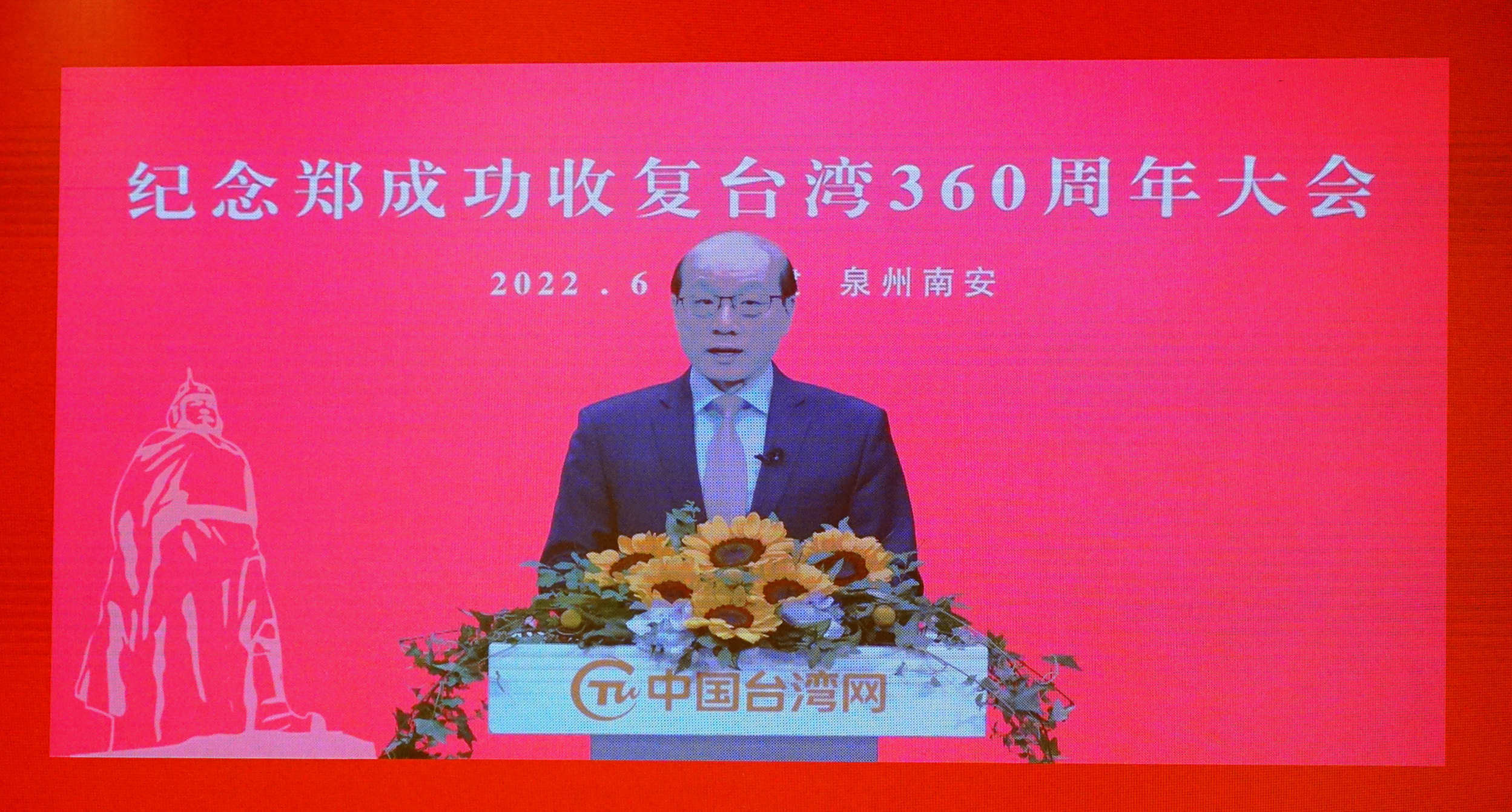 (大公文匯網記者 蔣煌基)今年是民族英雄鄭成功收復台灣360周年。鄭成功故里福建省泉州市南安,今日(14日)舉行紀念鄭成功收復台灣360周年大會,中共中央台辦、國務院台辦主任劉結一,中國國民黨原副主席曾永權等進行視頻發言,國台辦副主任龍明彪等出席參加。