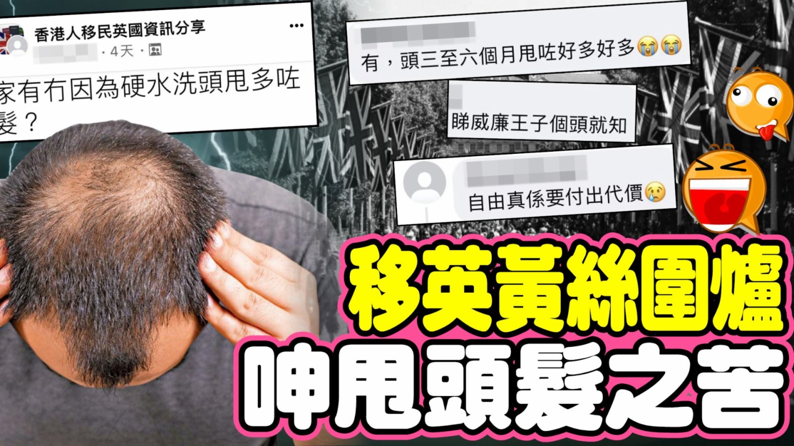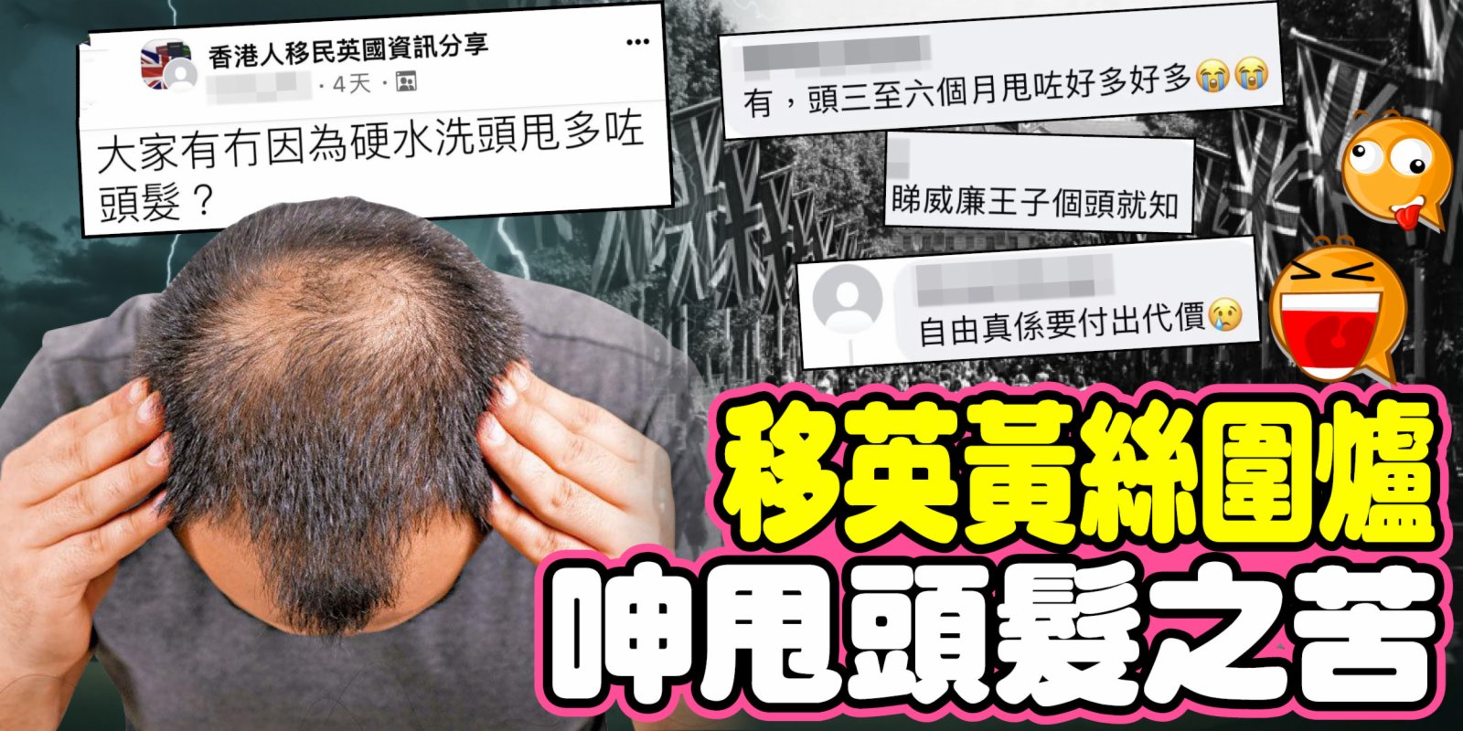 大公文匯全媒體報道:不少移民英國嘅黃絲為了三千煩腦絲好煩惱,就係愈甩愈多頭髮,不斷糾纏問係咪硬水問題。有移英黃絲日前在fb專頁「香港人移民英國資訊分享」投稿,問「大家有冇因為硬水洗頭甩多咗頭髮?」,帖文一出即引起「同路人」圍爐取暖。