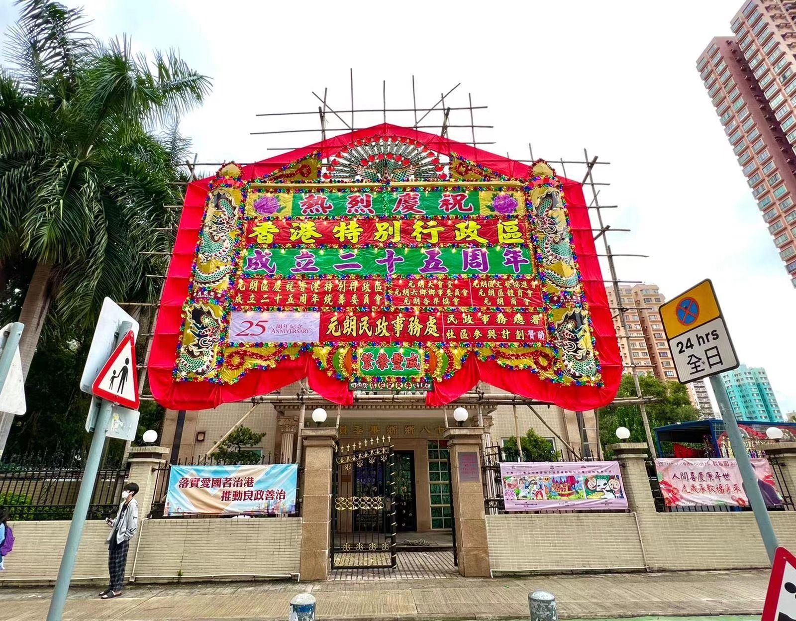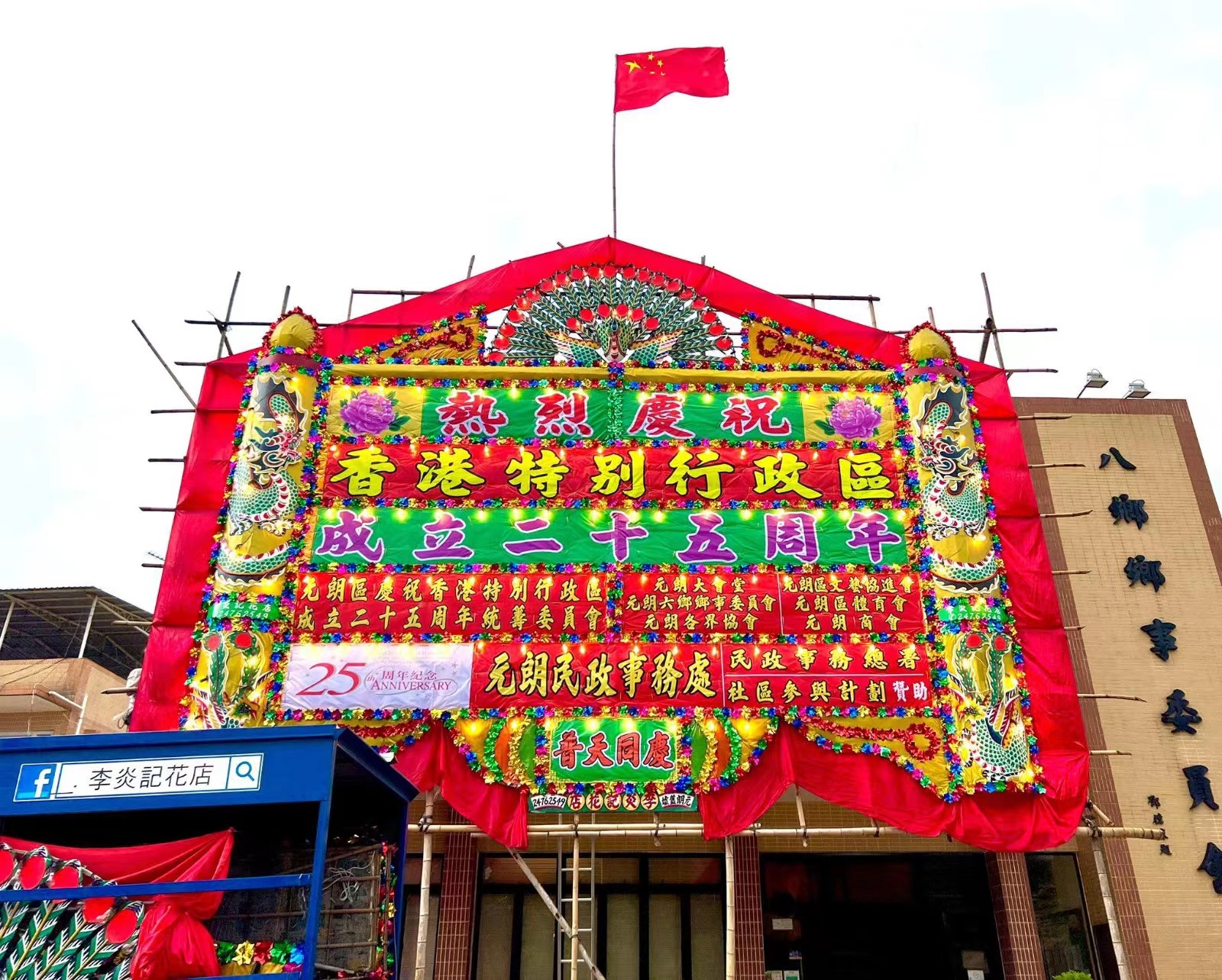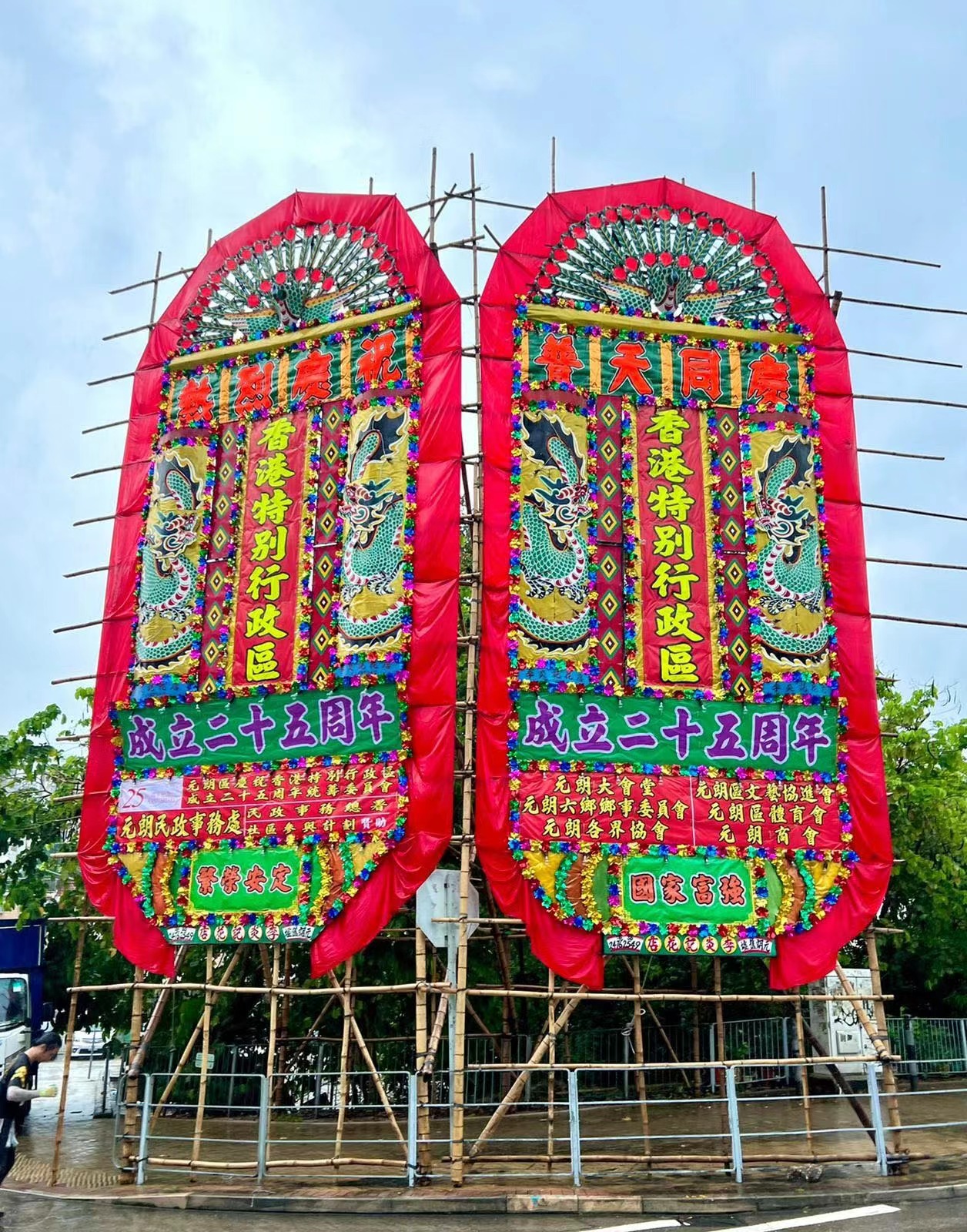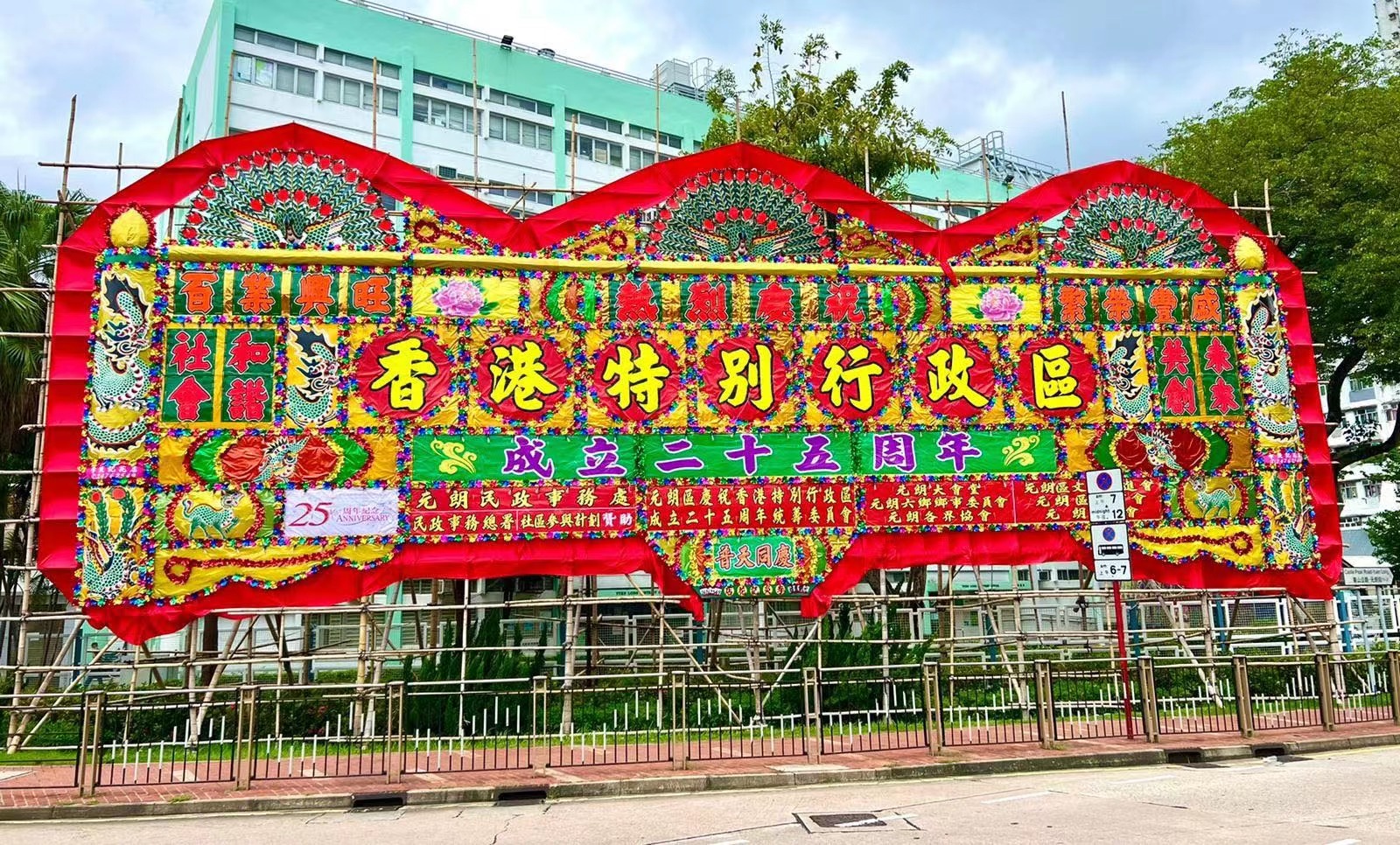 大公文匯全媒體報道,今年是香港回歸祖國25周年,臨近七一,新界居民紛紛架設傳統大型花牌,與市民共慶共樂,共襄盛世。傳達祝福的同時,也促進香港傳統手藝傳承,促進文化保育。