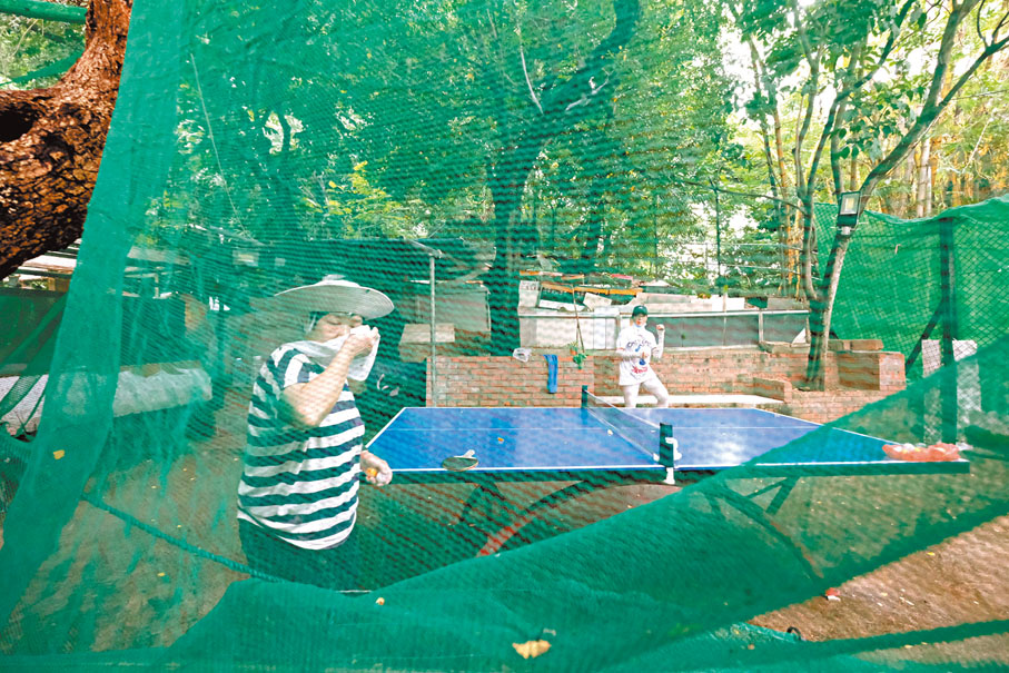 【香港文匯報記者 文禮願】深水埗石硤尾主教山一大片官地,十多年前被晨運人士開墾放置佛像,以及單槓架、鞦韆等康體設施,單是乒乓球枱數量已快速增至近30張,月前政府部門張貼公告要求移除相關構建物或雜物。昨日是「清場」限期,數十名有份參與興建這個「後花園」的街坊大清早齊聚山頭嚴陣以待,雖然政府部門昨日最終未有清場行動,但居民表示會每日守候,並已收集2,500多名街坊簽名反對清拆。立法會議員鄭泳舜認為,深水埗一帶多年來欠缺休憩空間,促請政府在保育主教山配水庫之同時,一併活化山上用地,為街坊做好規劃設置,而不是「拆咗見唔到就算」。