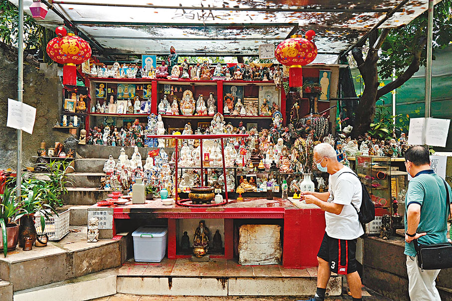 主教山地勢不高,位置在界限街旺角段以北,東面連接大坑東蓄洪池遊樂場及棠蔭街,北接窩仔街、近石硤尾站,西面則連接巴域街的學校區域,滿山被放置大量康體設施及佛像。居於太子區的芳姐是主要牽頭人,她昨日帶領香港文匯報記者上山巡察,「神壇上的佛像是街坊們搬屋後放在山頭,晨運客好心建個佛枱以示恭敬,𠵱家要我哋拆走,唔通丟晒佢咩?」