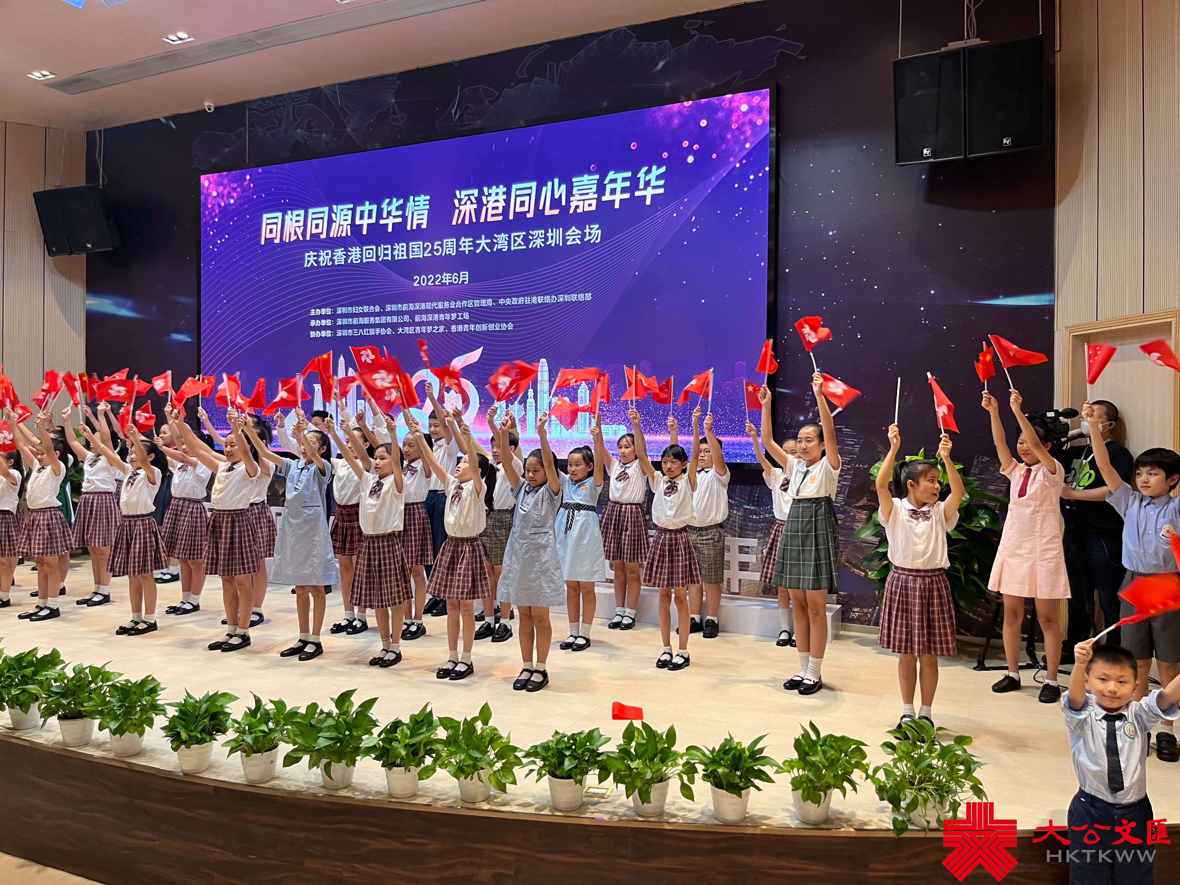 活動現場,屏幕同步展示由在深港籍同胞錄製的慶回歸視頻,以香港青年來深創新創業視角展示了灣區發展的蓬勃生機;由羅湖區深港跨境學童組建的合唱團深情演唱《我和我的祖國》,以最美童聲生動詮釋深港同心;深港兩地領導共同啟動慶回歸活動,為深港融合展開嶄新畫卷。
