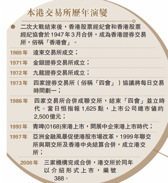 經過多年的磨合,「四會」在1986年正式合併,香港聯交所開始運作,成為香港唯一的證券交易所,使香港市場進入新時代。當時聯交所交易大堂採用最先進的電腦,輔助交易系統進行證券買賣,股票交易也由此進入電子化時代。