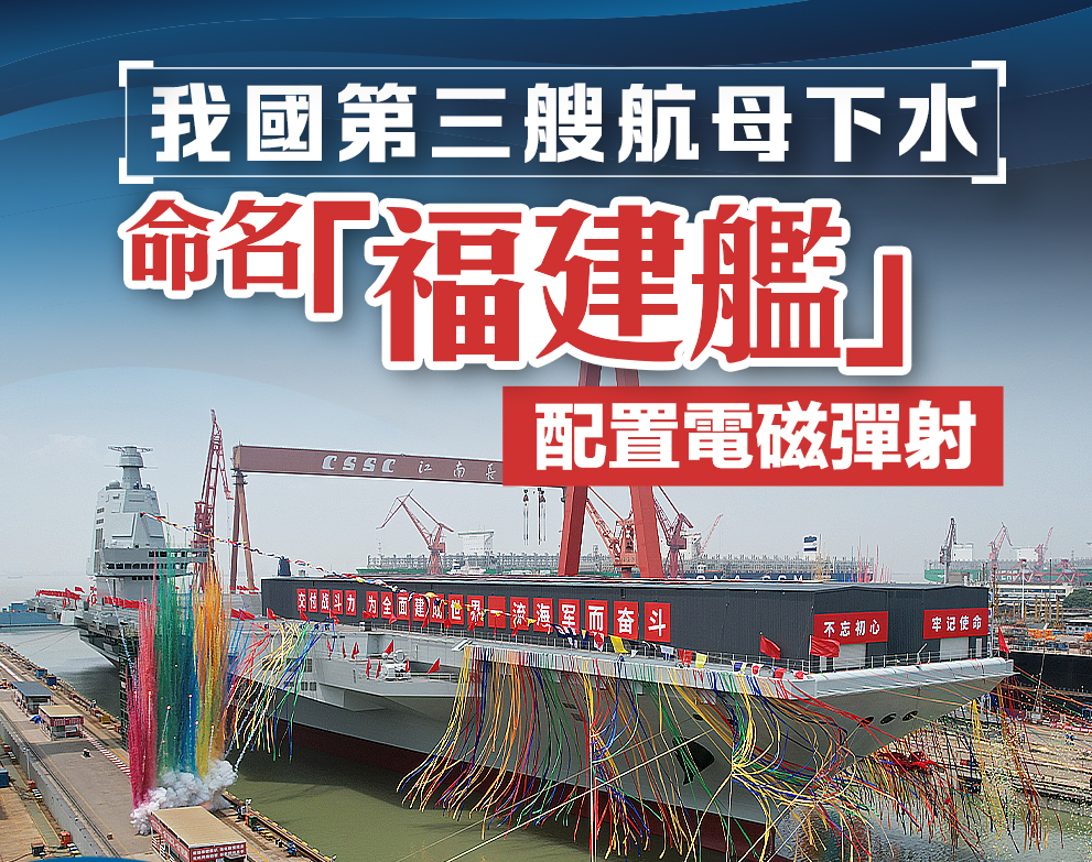 大公文匯全媒體報道,今日(17日)上午,我國第三艘航空母艦下水命名儀式在中國船舶集團有限公司江南造船廠舉行。今天晚上,海軍新聞發言人劉文勝海軍大校就福建艦命名、部署地、性能特點及試驗安排等問題發布了相關資訊。