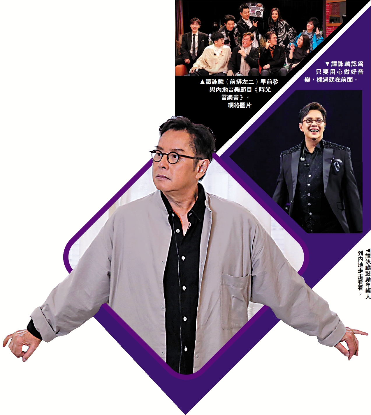 熱播中的音樂節目《聲生不息》邀請不同年代的歌手演出,譚詠麟也有留意,並指節目旨在傳承,一班年輕歌手跟前輩們合作,他們只要享受舞台,便很好了。問到會否參與該節目嗎?他表示早前節目組都斟洽過他參加,可惜檔期遷就不到。