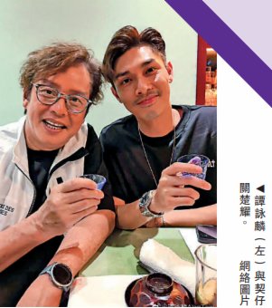 談起兒子,他指兒子已經工作,因為兒子小時候讀書跳班,很早已畢業。問到何時會做老爺呢?譚詠麟笑說:「兒子已過21歲,有自己的主張,我亦提醒兒子應以事業為重。至於待人接物,沒問題的,兒子有我的基因。」