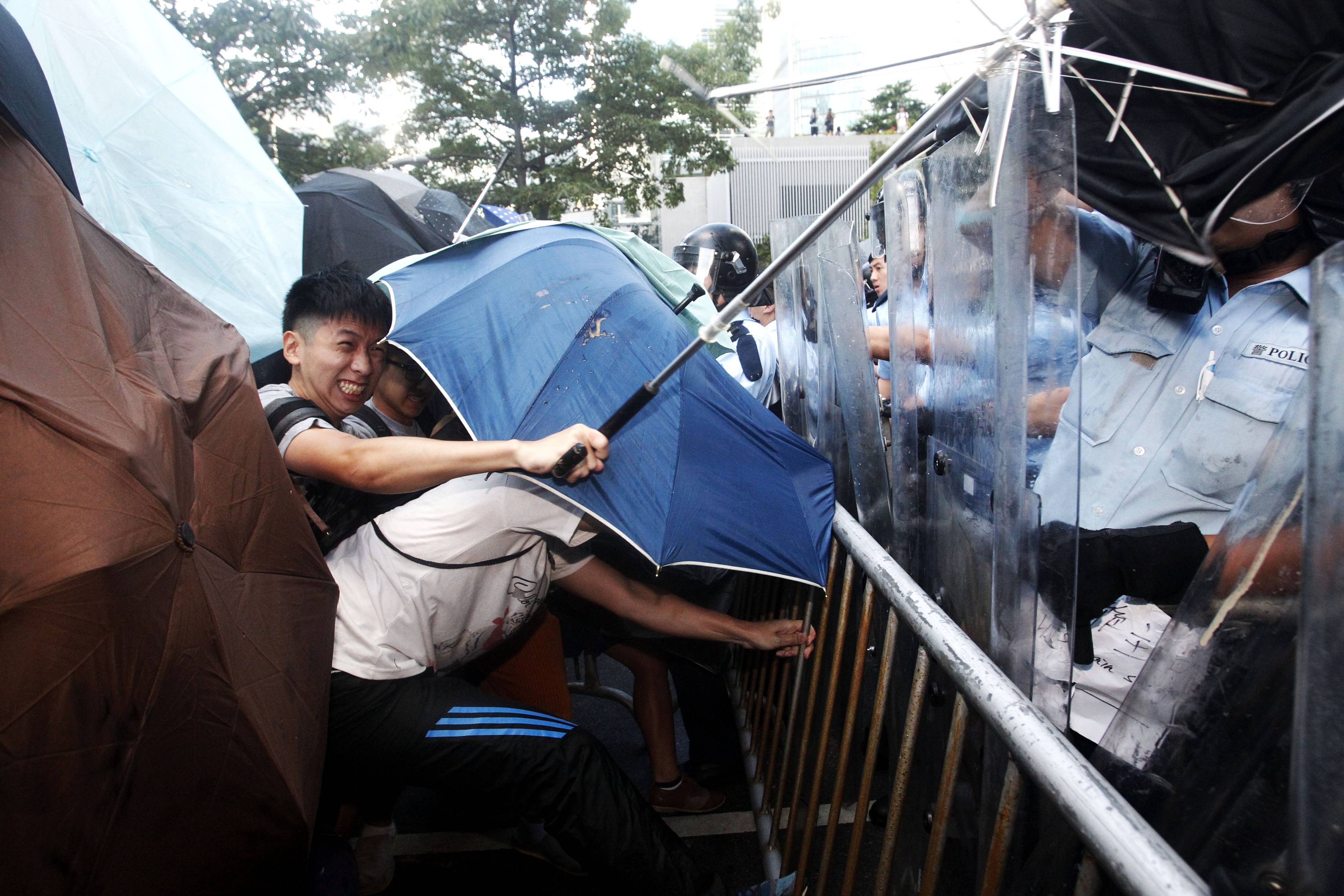 11月30日晚上9時,「學聯」常委羅冠聰於集會上煽動「對準政權,包圍政總」,近千名集會者響應,瞬間湧到添馬公園近特首辦一帶。示威者直逼特首辦,被警察阻止。晚上9時20分,警察開始噴灑胡椒噴霧,並動用伸縮警棍,制服多名激進示威者。