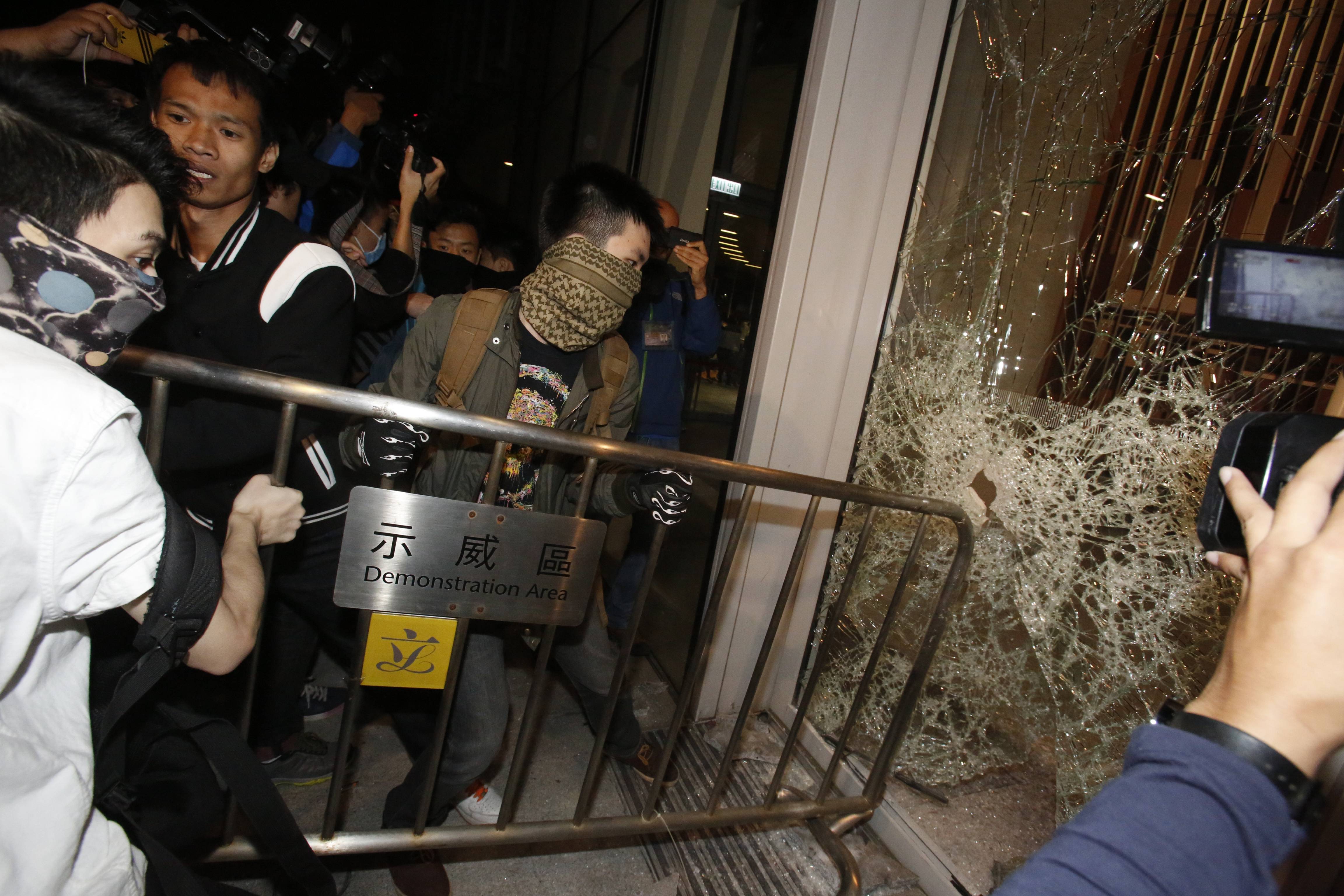 11月19日凌晨,一批戴上頭盔、眼罩、口罩或面具的示威者,利用鐵馬、磚塊、石屎渠蓋及垃圾桶等,多次猛烈撞擊立法會大樓玻璃門,撬毀磚牆,令大樓多處嚴重損毀。警員到場阻止時,大批示威者包圍及辱罵警員,更多次以擲物及用雨傘擊向警員。警方其後以襲警、刑事毀壞拘捕了至少6人。