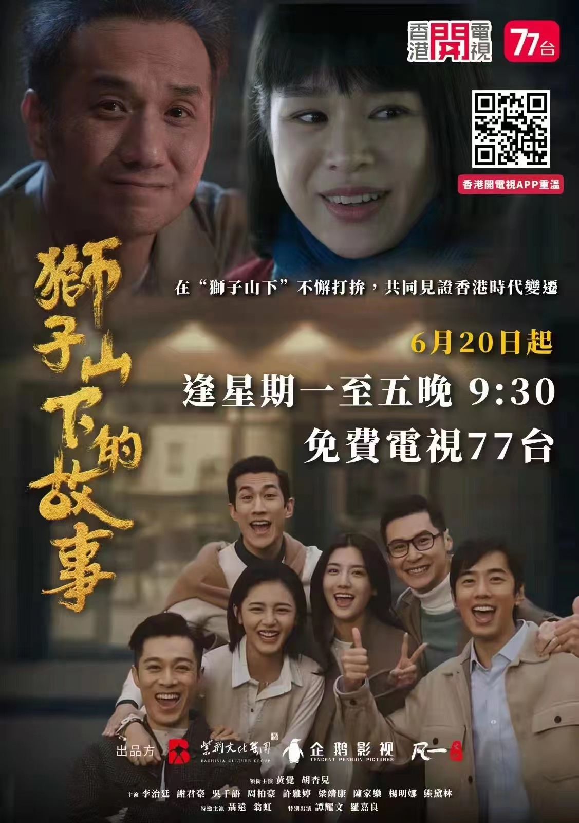 由黃覺、胡杏兒領銜主演,李治廷、謝君豪、吳千語、樊亦敏、周柏豪等主演的劇集《獅子山下的故事》將於下周一(20日)起逢周一至五晚上9時30分,在有線電視開電視播出。