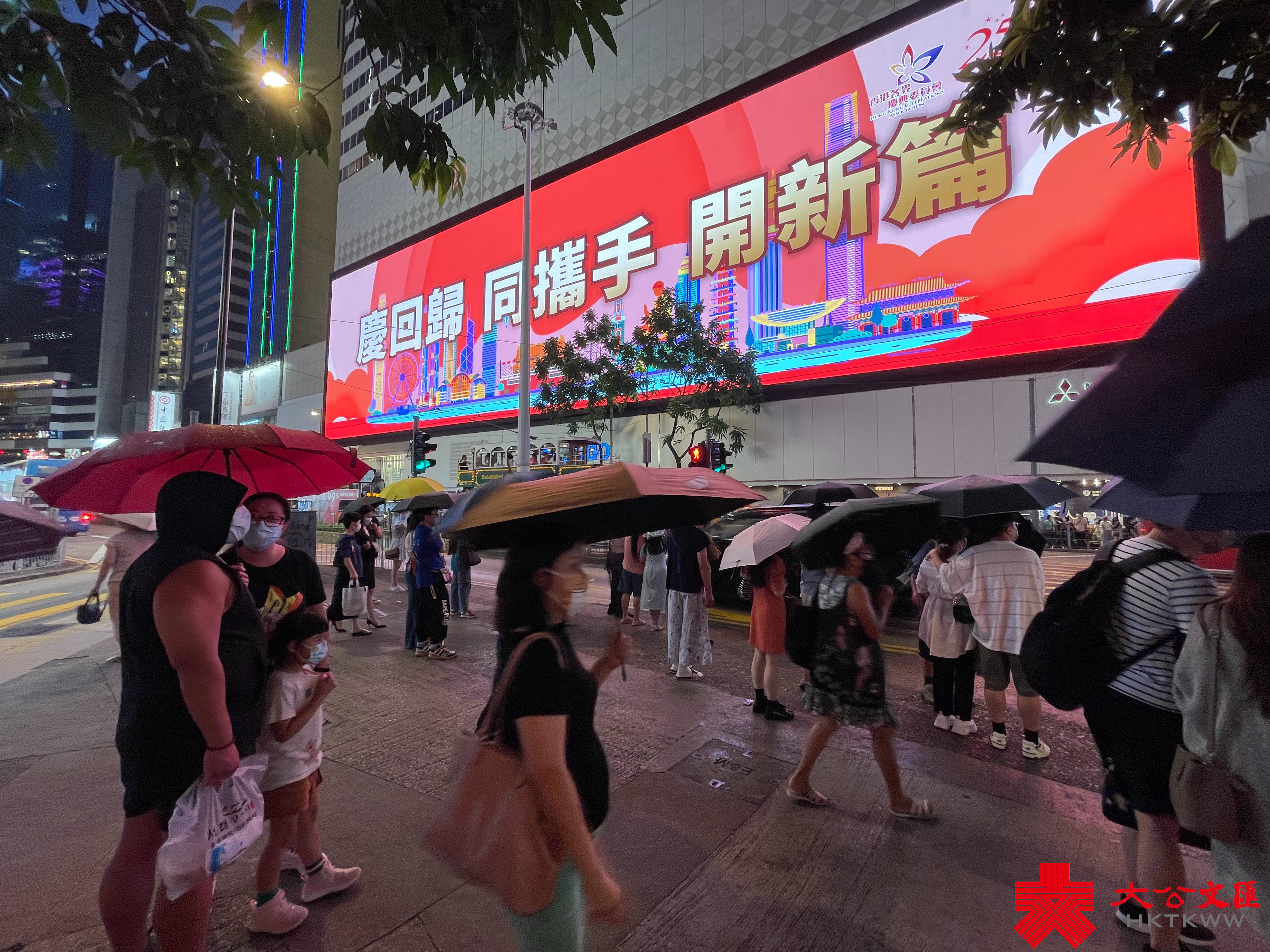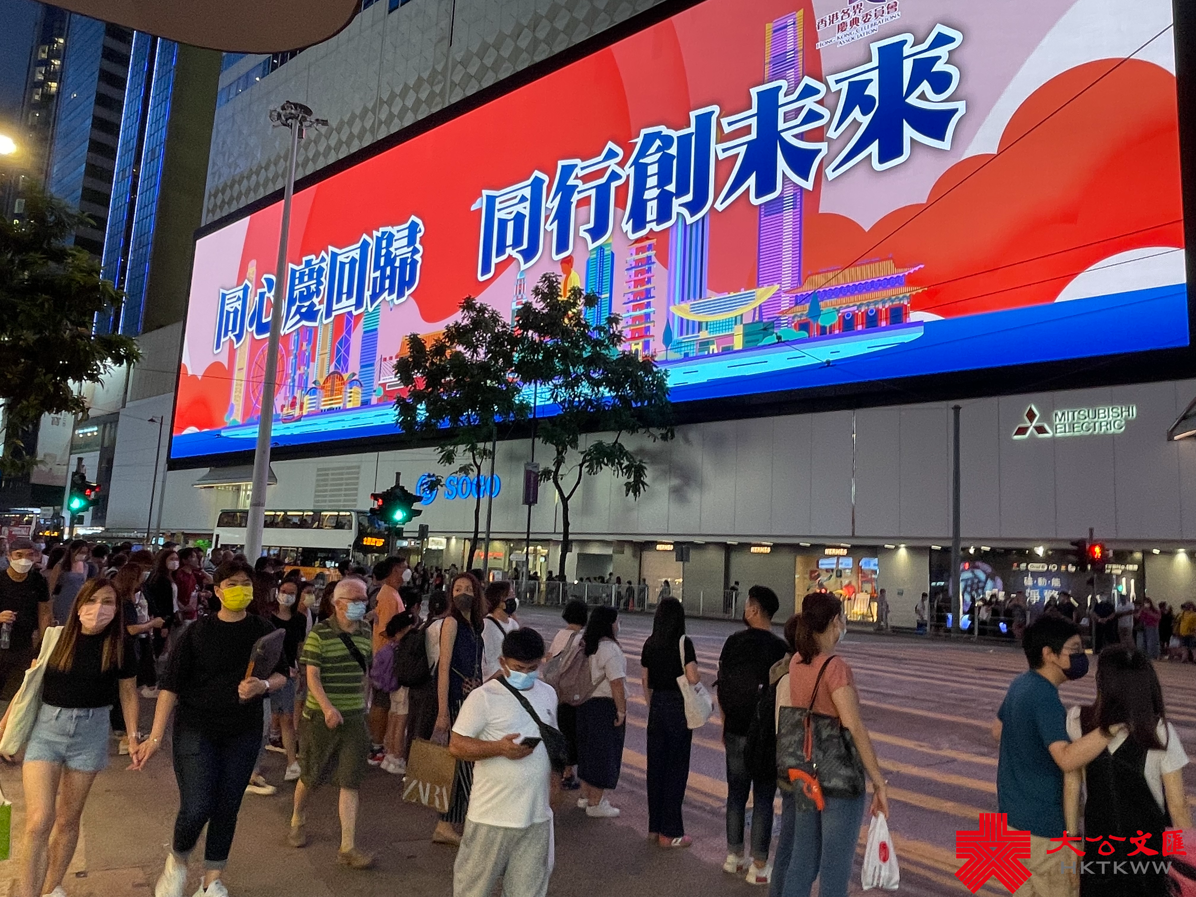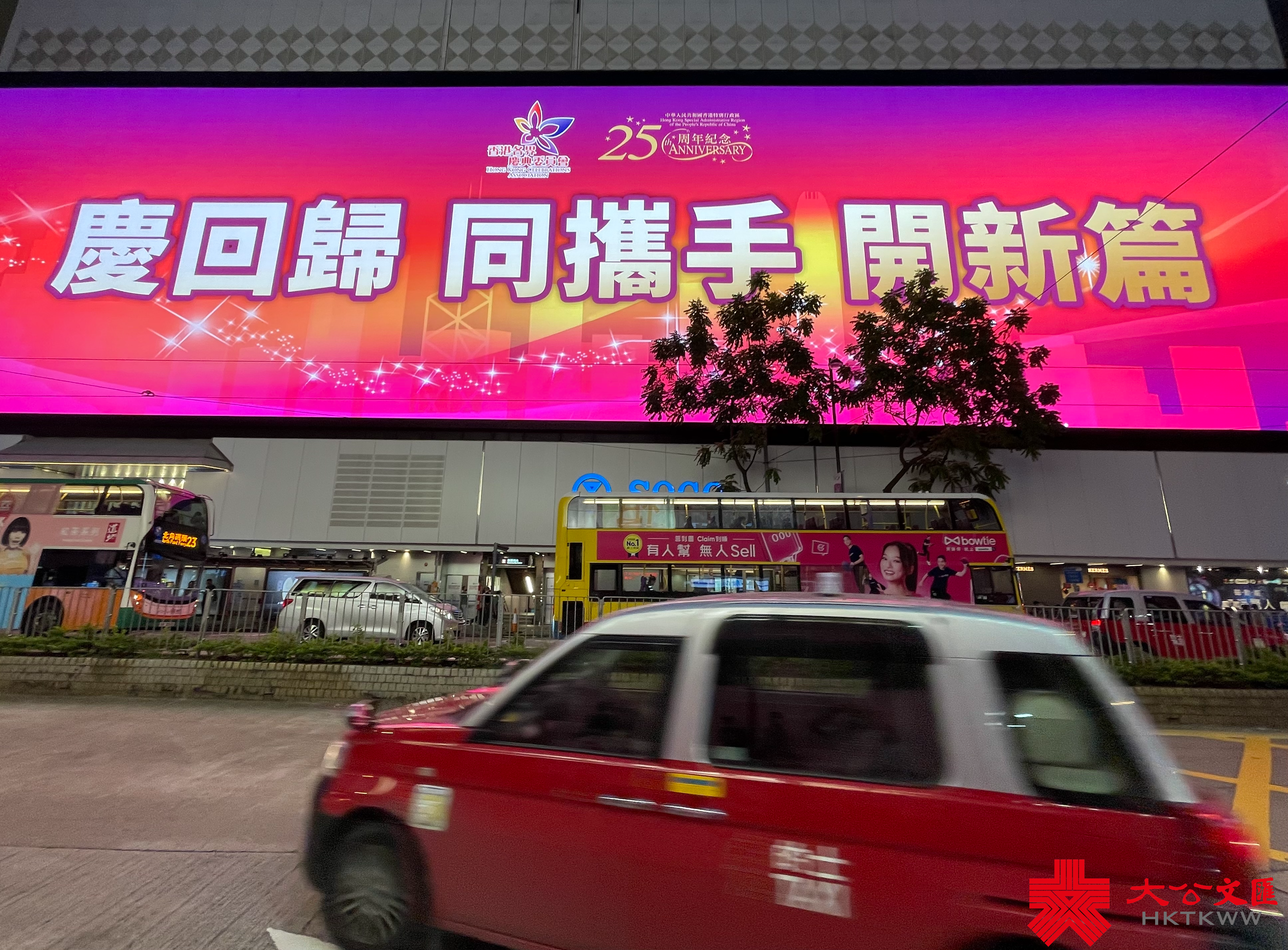 大公文匯全媒體報道,為慶祝香港回歸祖國25周年,本港各處都紛紛舉辦不同慶祝活動。近日,銅鑼灣SOGO商場大屏幕循環展示「同心慶回歸 同行創未來」、「慶回歸 同攜手 開新篇」、「同心慶回歸 同行創未來」等標語,慶祝香港回歸祖國25周年,寄語港人展望未來,開創新篇章。