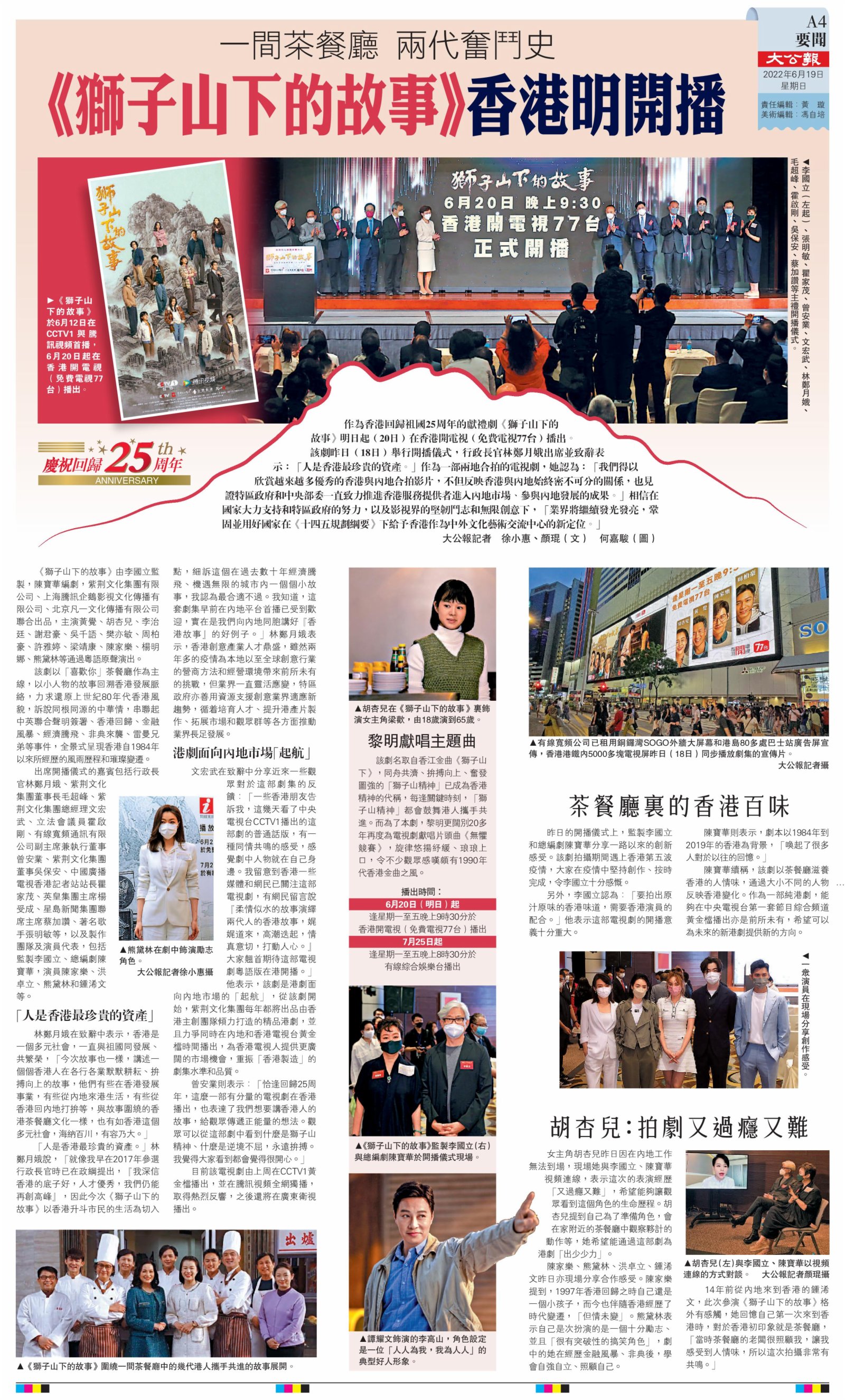 (大公報記者 徐小惠、顏琨)作為香港回歸祖國25周年的獻禮劇《獅子山下的故事》明日起(20日)在香港開電視(免費電視77台)播出。