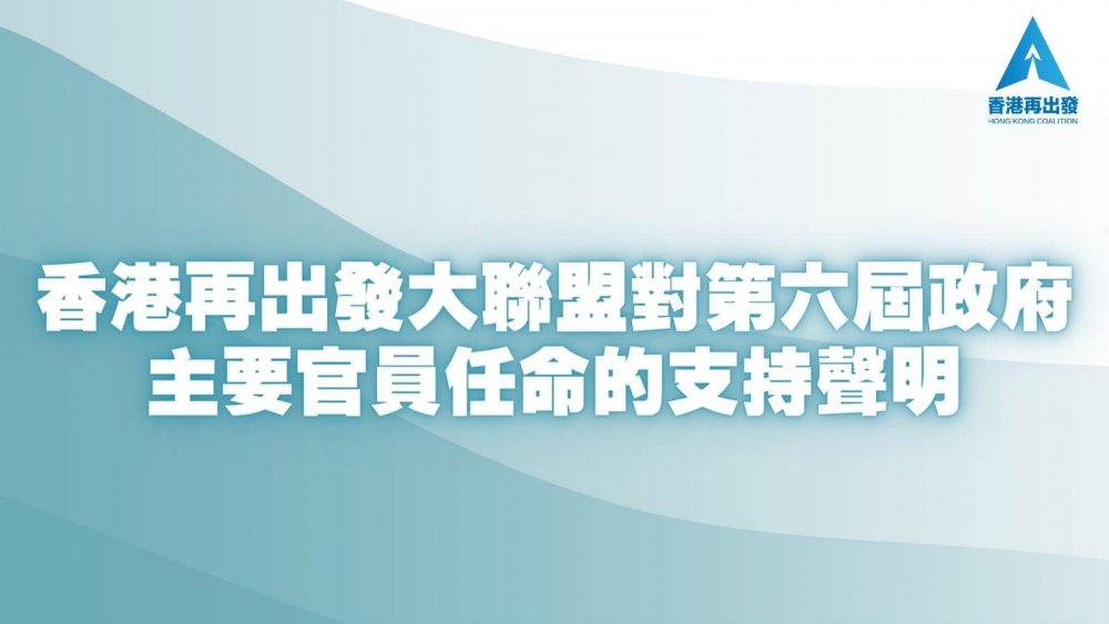 大公文匯全媒體報道,中央人民政府今日(19日)正式任命香港特別行政區第六屆政府的主要官員,香港再出發大聯盟對此任命表示堅決支持,並向每一位受任命官員表示祝賀,期望他們在未來的工作中,堅定愛國愛港信念、團結香港社會,發揮所長,共同協助第六任行政長官李家超高效施政、排除萬難,開創香港新篇章!