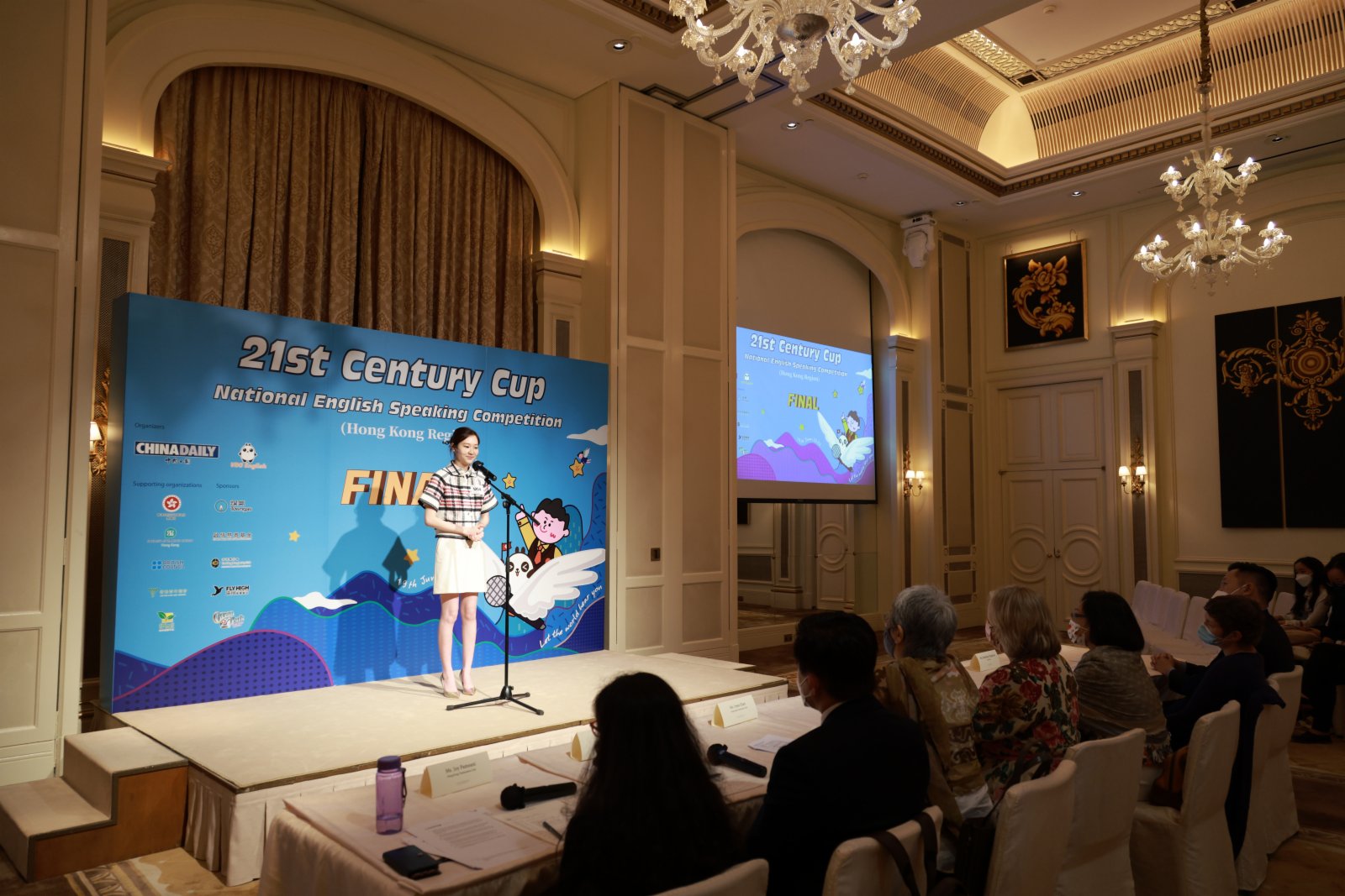 大公文匯網報道,由中國日報香港版及VDO English主辦的「21世紀盃」全國英語演講比賽(香港賽區)決賽今日(19日)上午在香港半島酒店舉行。福建中學附屬學校的李林墨、聖公會聖彼得小學的黃家衍、英基南島學校的鄧浩賢、拔萃女書院的陳詩濼、香港大學的馬曉真分別奪得了初小、高小、初中、高中、大學組五個組別的冠軍。適逢香港回歸25周年,他們將攜手其他7名優勝選手,代表香港賽區參與今年的全國總決賽,與來自全國200多個賽區的優勝選手同台競技,展現香港學生的風采。