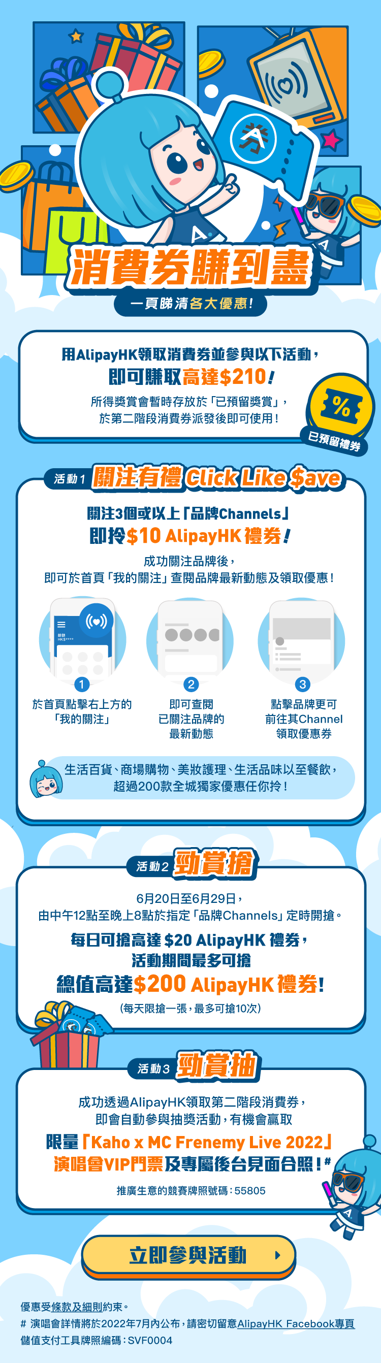 獎賞三:「勁賞抽」登記AlipayHK消費券抽「Kaho x MC Frenemy Live 2022演唱會VIP門票」及專屬後台見面合照