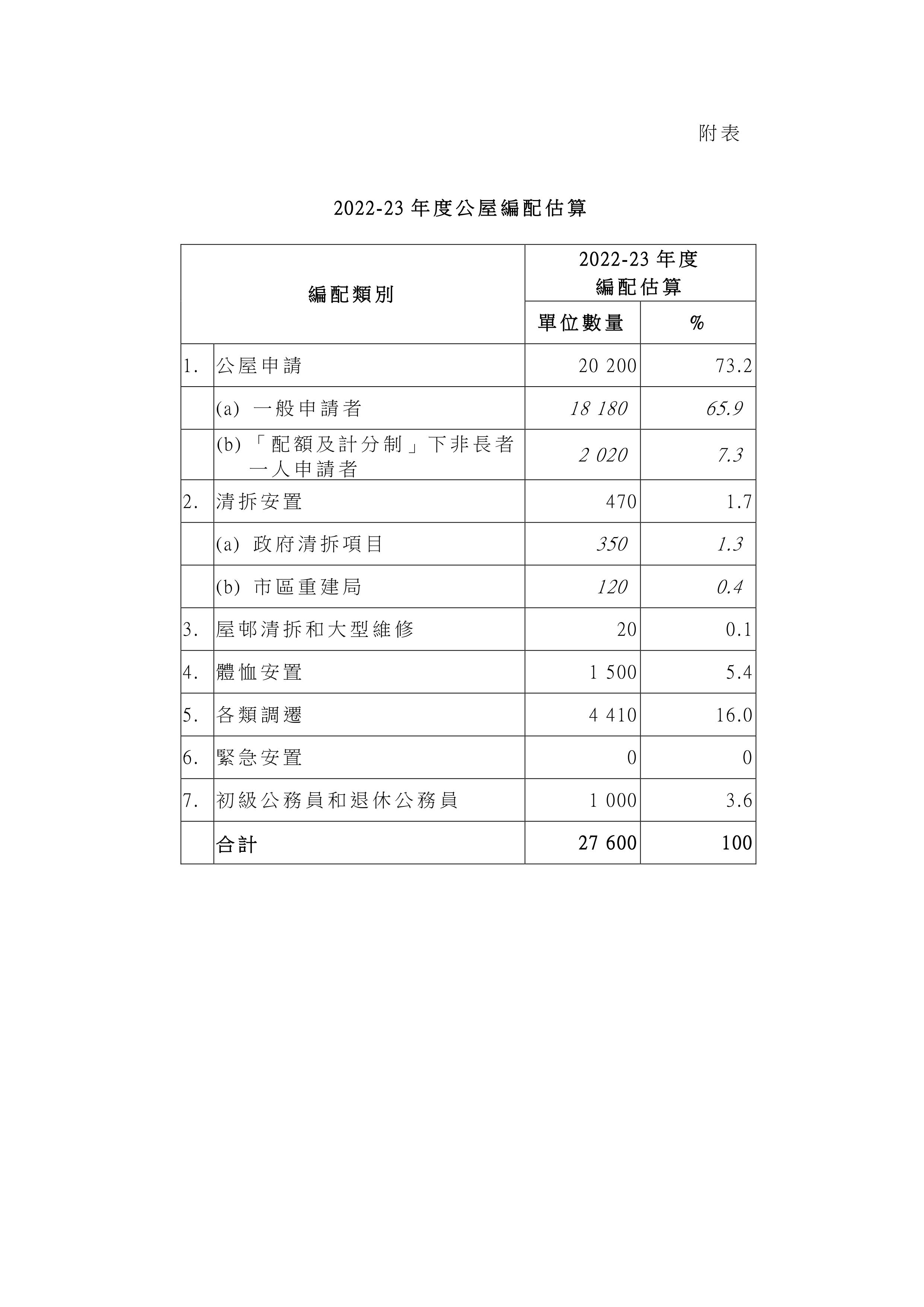 2022/23年度公屋編配估算如下: