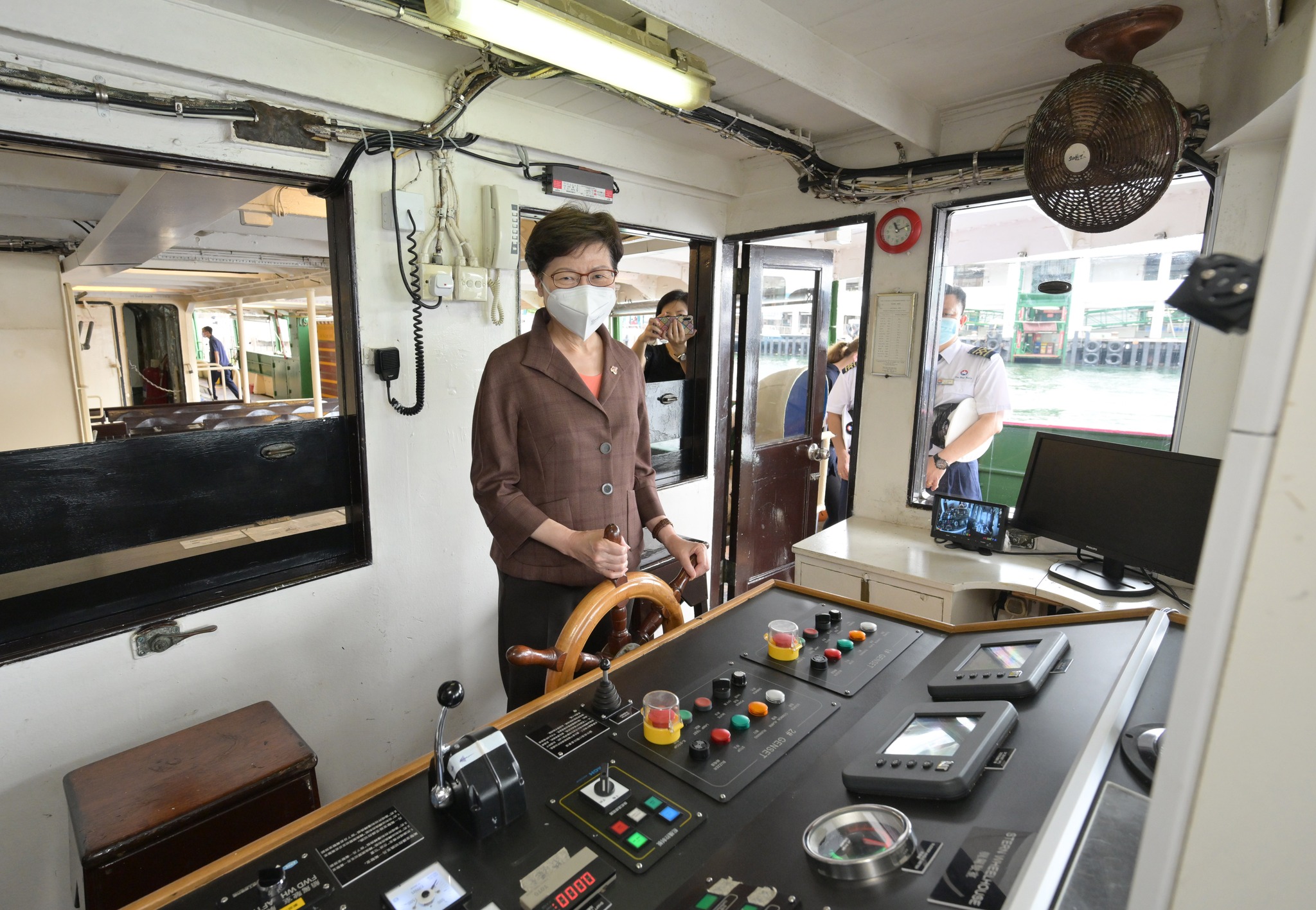 大公文匯全媒體報道,行政長官林鄭月娥今日(20日)與易志明議員和天星小輪管理層一同乘搭小輪由中環往尖沙咀,並在開船前又獲安排到駕駛艙參觀,了解這個在港具有逾百年歷史的公共交通工具的最新發展。林鄭在社交媒體上表示,對於天星小輪多年來堅持提供票價相宜、往來維港兩岸的渡輪服務,同時敢於在營運方面應用綠色創新運輸技術、推動本港集體運輸系統可持續發展,感到十分鼓舞。