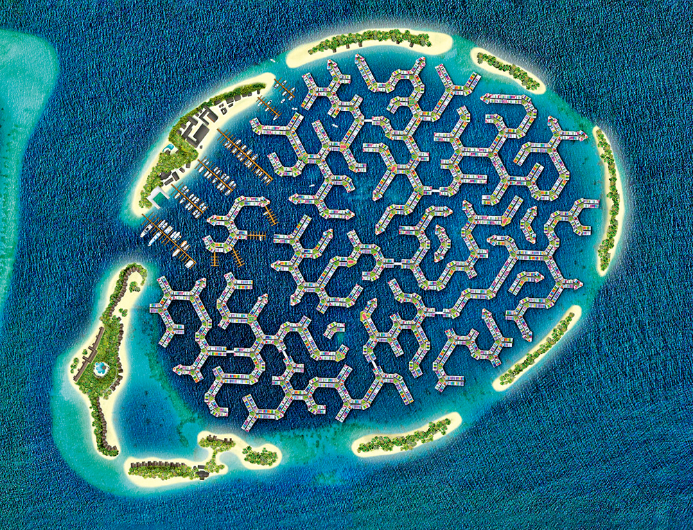 該漂浮城市整體結構受當地珊瑚的獨特形狀啟發,採取了蜂窩狀六角形,俯瞰時猶如一個迷宮。項目面積約為200公頃,並由5000個浮動單位組成,可容納兩萬人居住,包括住宅區、商業區、學校、醫院及政府大樓,未來還會以模塊化的方式繼續擴展。