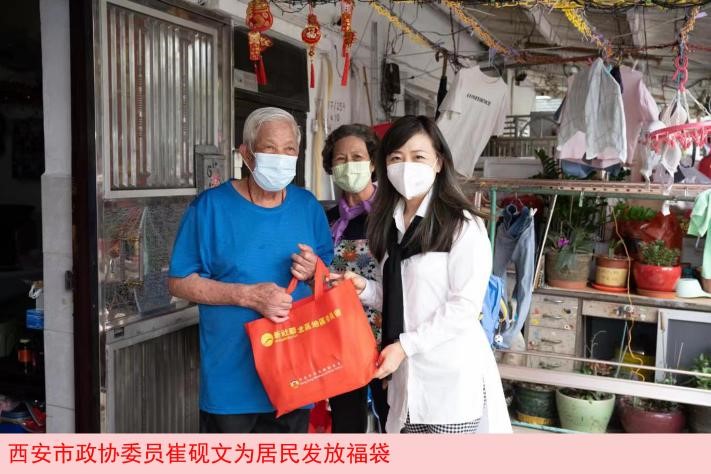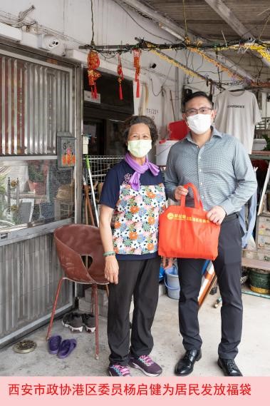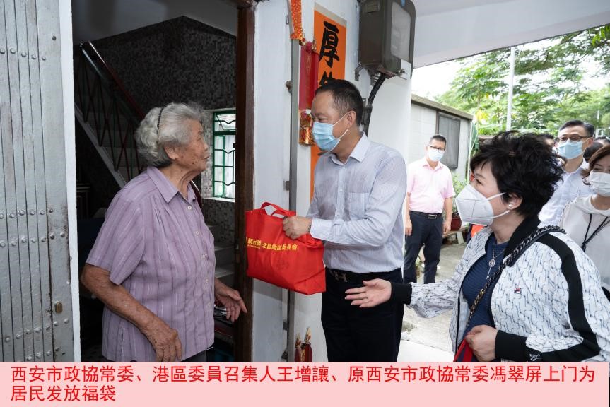 王增讓、帶領全體委員現場福袋派發和上門慰問派發福袋工作,發送日常物資與抗疫用品,逐家入戶為貧困居民送上福袋和親切的祝福。