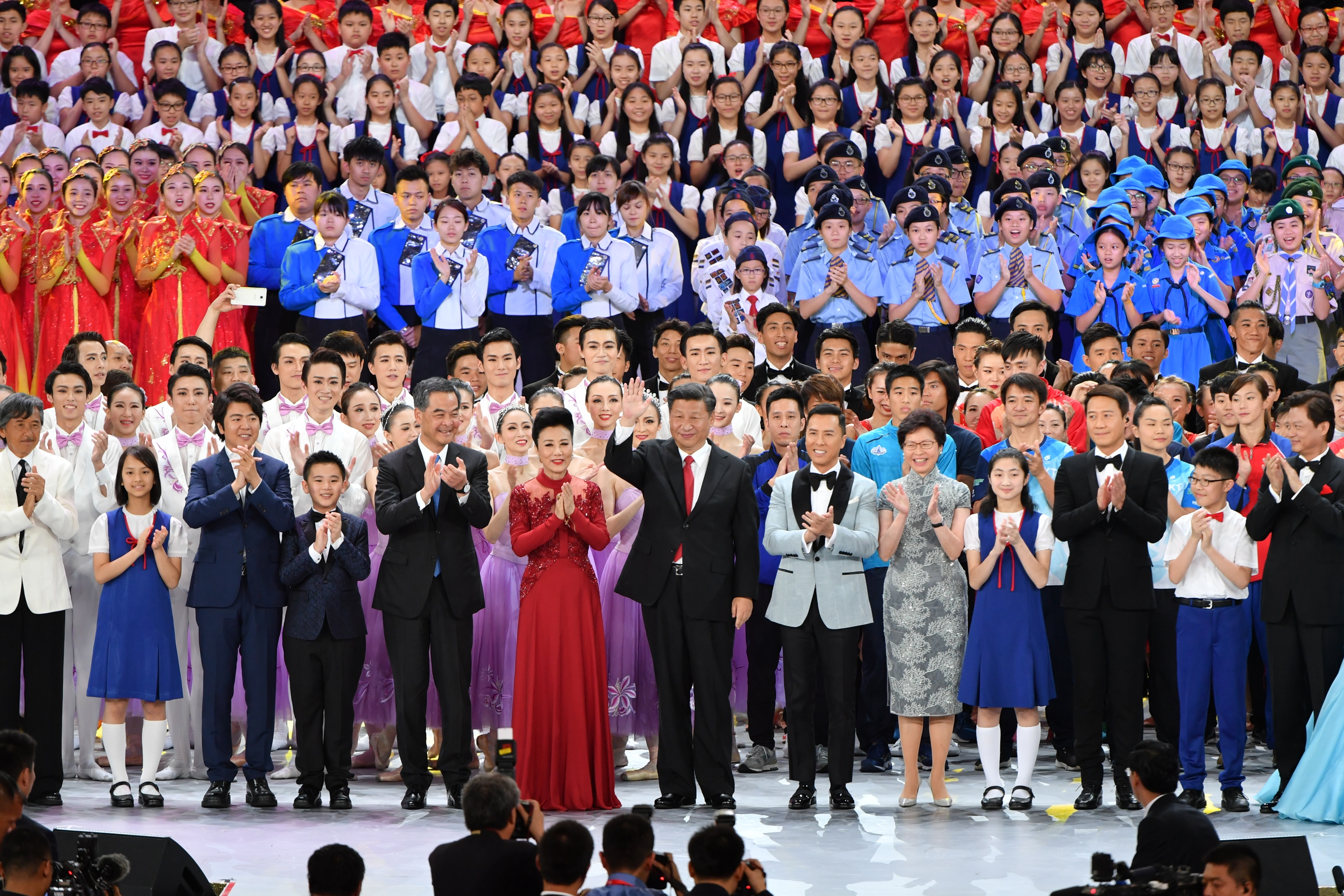 「五星紅旗迎風飄揚,勝利歌聲多麼響亮!歌唱我們親愛的祖國,從今走向繁榮富強」,當晚,習近平及夫人彭麗媛出席香港特區歡迎晚宴及慶祝香港回歸祖國20周年文藝晚會。習主席走上舞台,同演職人員一一握手,同全場一起放聲高歌,祝願偉大祖國繁榮昌盛,祝福香港明天更加美好。在推進「一國兩制」的實踐中、在中華民族偉大復興的康庄大道上,香港奏響了強勁的華彩樂章。