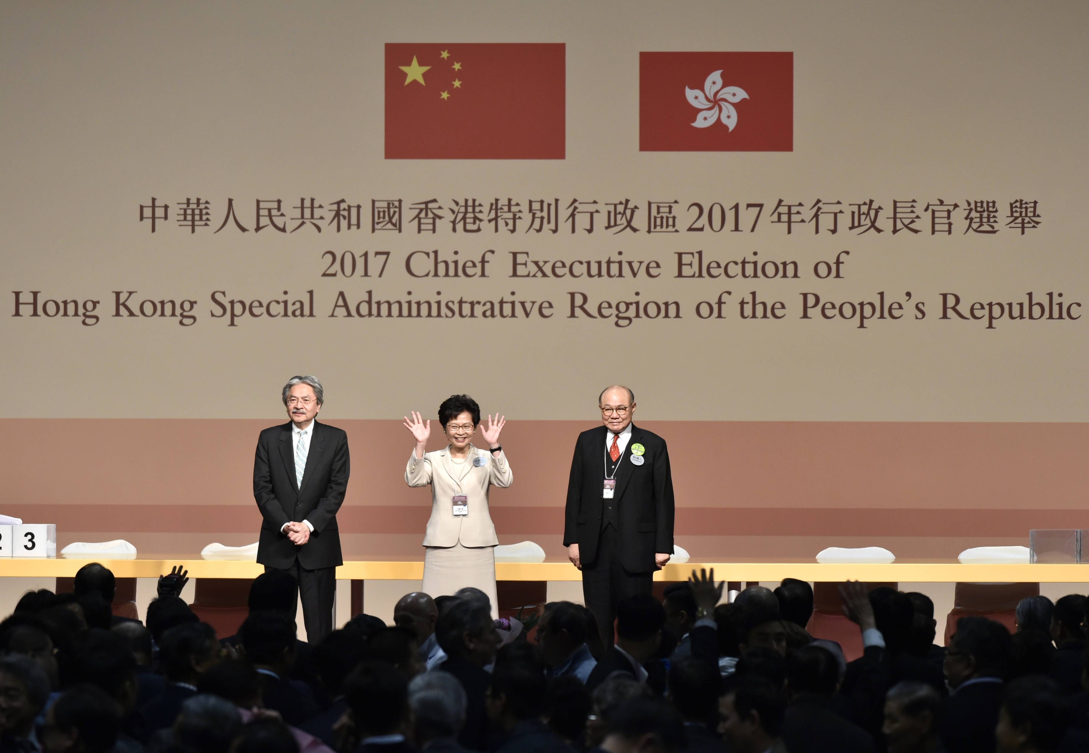香港特區第五屆行政長官選舉2017年3月26日在香港會議展覽中心舉行,上午9時至11時進行首輪投票。首輪投票結束後,票箱被運至中央點票站點票。選舉主任下午宣布點票結果:有效選票共1163票,林鄭月娥取得777票,由於候選人取得逾600票即可當選,選舉主任宣布林鄭月娥當選香港特別行政區第五任行政長官人選,而競選對手曾俊華獲得365票,胡國興獲得21票。