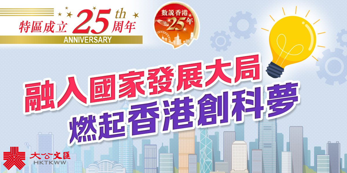 大公文匯全媒體報道,今年是香港回歸祖國25周年,在中央政府全力支持下,香港在「一國兩制」實踐中,克服了種種困難,取得了非凡的成就,創新科技也在其間得到日新月異的發展,香港不斷融入祖國發展大格局,創造令人欣喜的佳績。