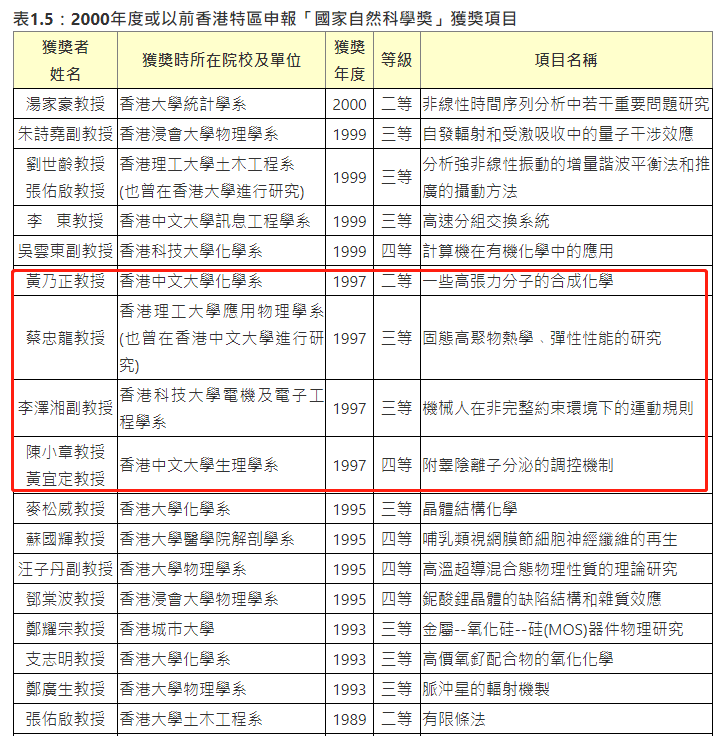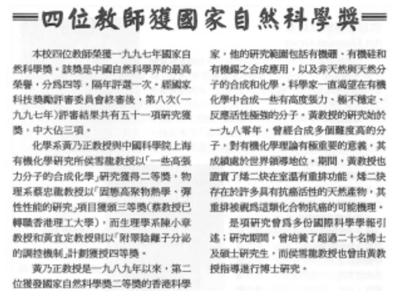 1997年 香港回歸祖國懷抱,香港特別行政區正式成立。國務院首次邀請黃乃正、蔡忠龍、李澤湘、陳小章和黃宜定等五位香港獲奬學者參加國家科學技術奬勵大會,香港獲奬學者獲國家領導人江澤民、李鵬、朱鎔基等接見。