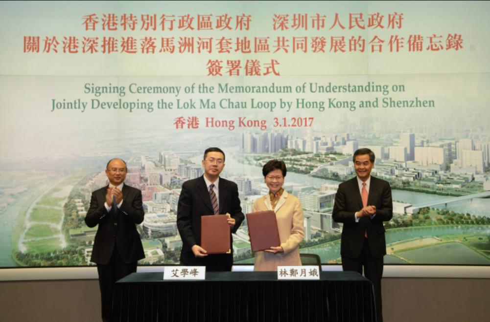2017年 港深政府簽訂《關於港深推進落實深港河套地區共同發展的合作備忘錄》。李克強總理在全國人大會議上提出研究制定粵港澳大灣區城市群發展規劃,推動港澳與內地深化合作。特區政府成立20億港元創科創投基金、推出科技人才入境計劃、與深圳簽訂《粵港科技創新交流合作安排》。中文大學工程學院教授湯曉鷗帶領團隊於2014年創立商湯人工智能初創企業。