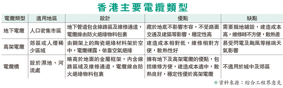 香港工程師學會前會長梁廣灝昨日在接受香港文匯報訪問時表示,電纜橋的設計本身無問題,是在現場環境不適合使用地下電纜及高架電纜時採用的改良方案,已在香港運用幾十年,「電纜橋的設計較為少見,以今次事發地為例,該地點為人工渠所在,無論是鋪設地下電纜還是高架電纜都不合適,採用電纜橋橫跨的折中方案是合理的。」