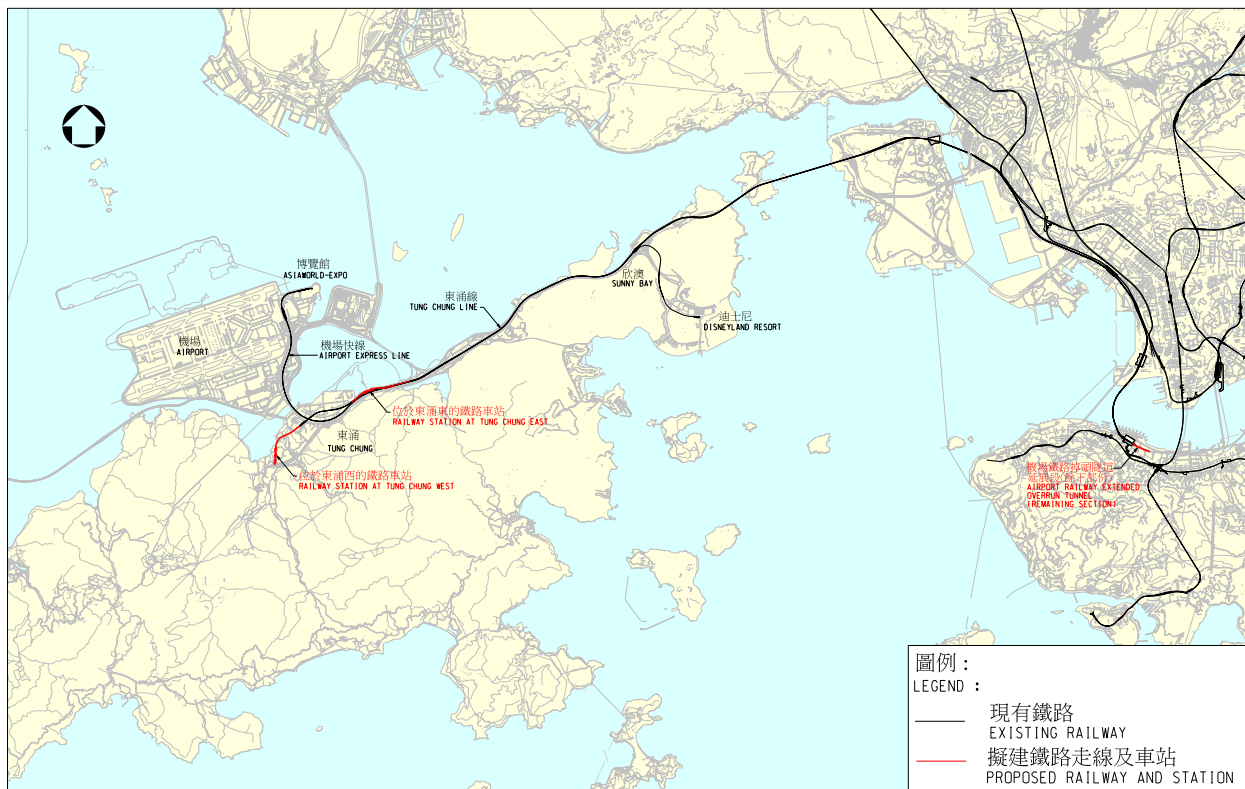 東涌線延線方案於去年12月10日刊憲,是《鐵路發展策略2014》中建議的七個鐵路方案之一。東涌線延線主要將現有的東涌線從東涌站伸延約1.3公里至東涌西一個新設的鐵路站,以及在東涌線欣澳站與東涌站之間增設東涌東站,當中涉及對現有一段約1.2公里長的鐵路線進行改道。這項目亦包括在香港站東面建造機場鐵路掉頭隧道延展段餘下長約460米的一段。工程項目下的兩個新車站及其相關鐵路段預計於2023年動工建造,並在2029年竣工。機場鐵路掉頭隧道延展段餘下部分目標於2032年竣工。
