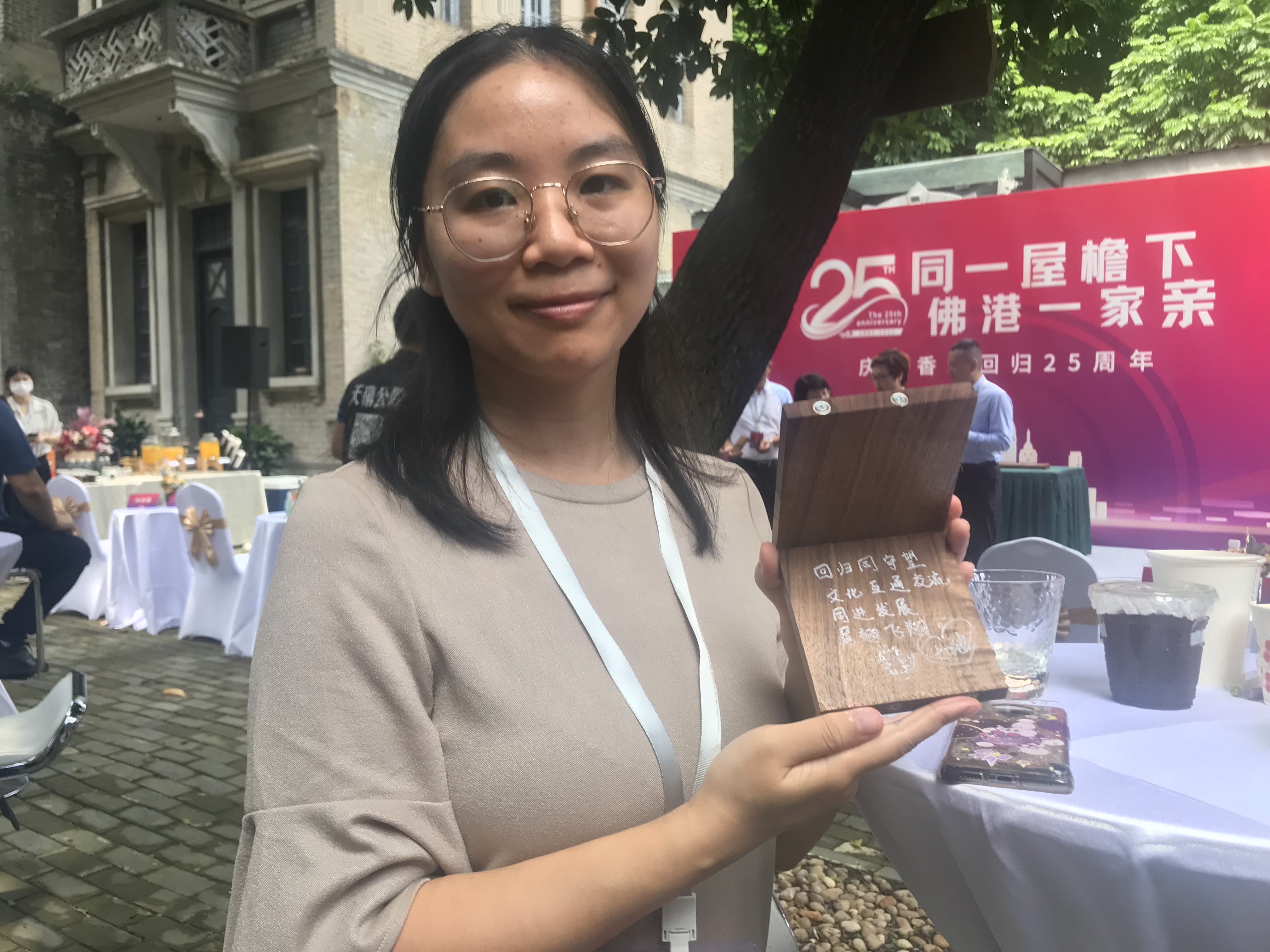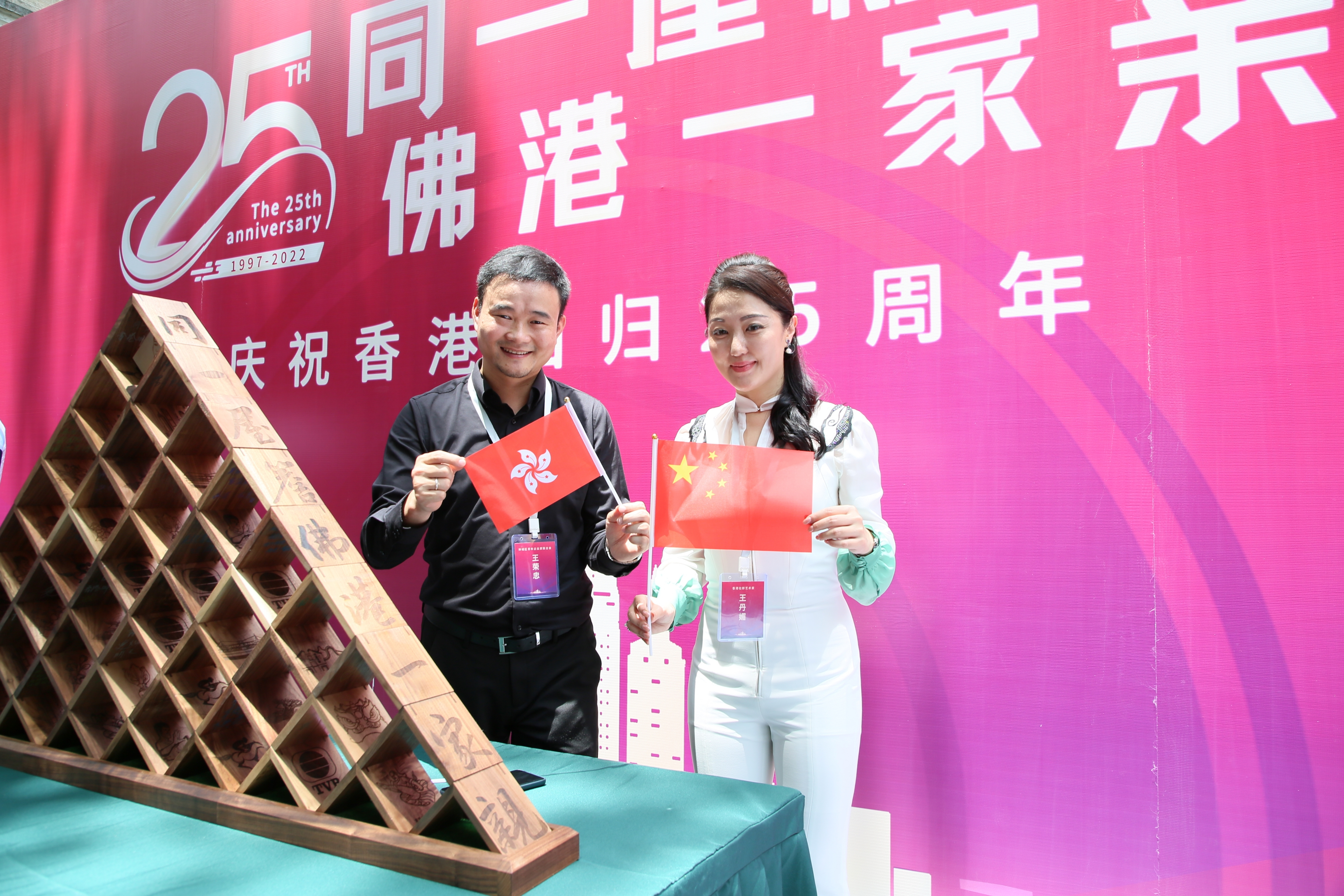 慶祝活動由佛山市禪城區港人交流會主辦,現場,香港社群藝術家王丹媚帶來了45個黑胡桃木製作的極簡主義造型「屋檐」,每個「屋檐」由兩面組成,分別用激光雕刻上佛山非遺形象和香港文化符號。活動參與者收到小「屋檐」後,互相交流對兩地文化符號的理解,加深了對兩地文化的認識和印象。他們亦可以在上面寫字、繪畫等創作,表達自己對祖國和對香港、佛山的祝福。