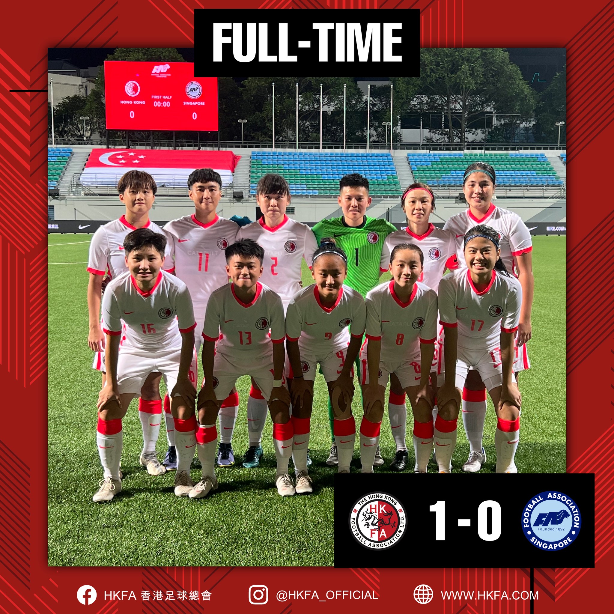 大公文匯全媒體報道,香港女子足球代表隊昨(26日)晚在新加坡進行第二場友賽,最終以1:0擊敗對手。這是香港女足繼上星期四4:0大勝對手之後,再度取勝,結果以兩戰兩勝結束新加坡之旅。