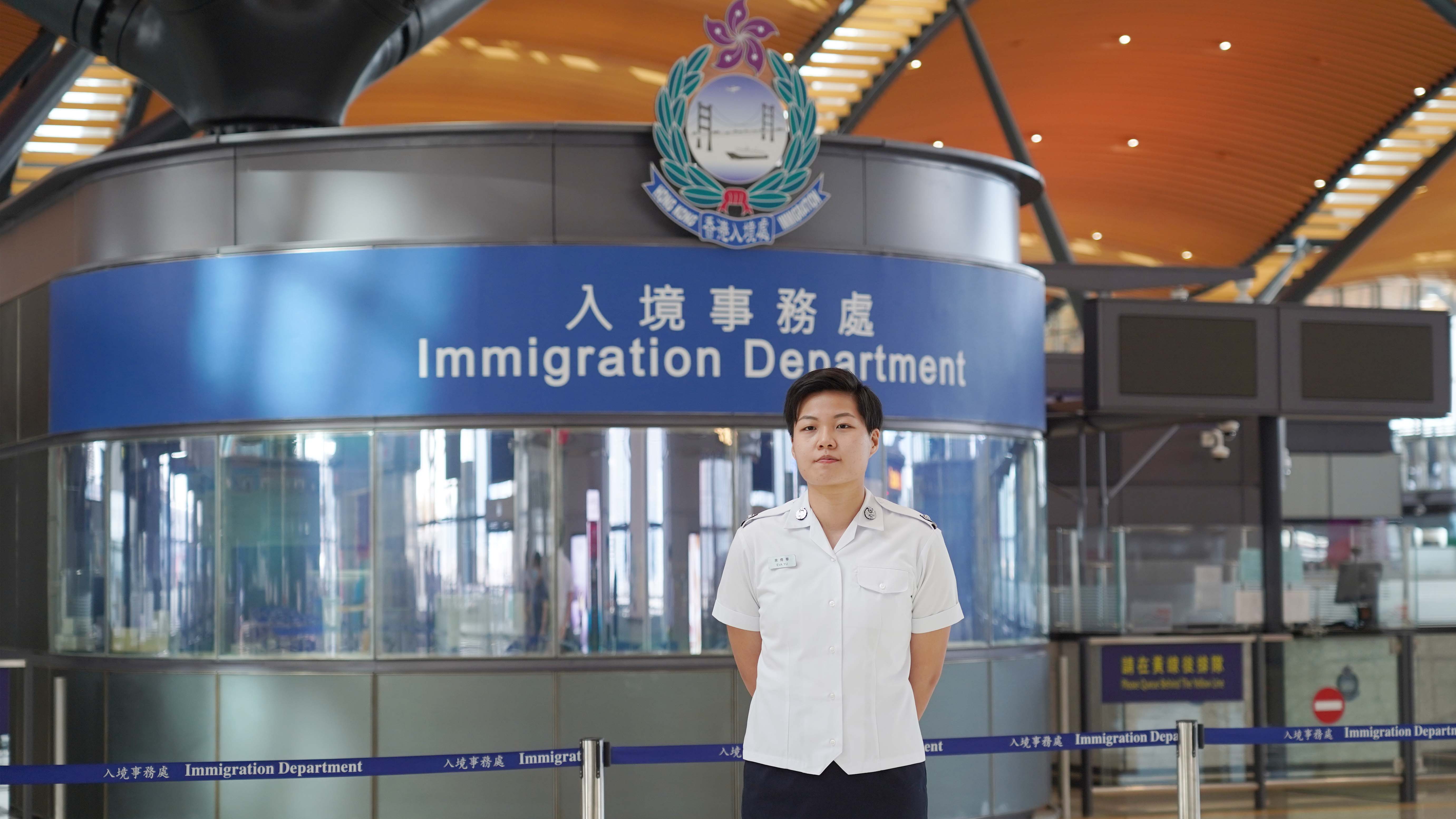 回想自己的成長歷程,余倚華意識到,在人生的每個階段,都離不開入境處提供的服務。最終,在家人和朋友的支持下,余倚華在2019年10月成功通過考核成為一名入境事務主任,循着自己的初心前進。