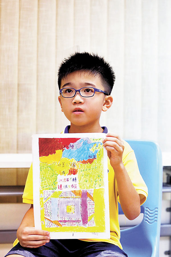 「功蓋三分國,名成八陣圖……」學習普通話不只是大朋友的專利,在國際學校就讀小學五年級、今年10歲的陳靜寬,年紀輕輕就已經說得一口相當標準的普通話。他向記者透露,自己學習普通話是希望以此作為廣泛溝通的媒介,認識更多的朋友。他還即席朗誦了唐代著名詩人、「詩聖」杜甫的《八陣圖》,只聽他咬字清晰,發音準確,感情起伏有序,抑揚頓挫恰到好處,彷彿帶領大家回到三國時代諸葛丞相用兵如神的古戰場中。
