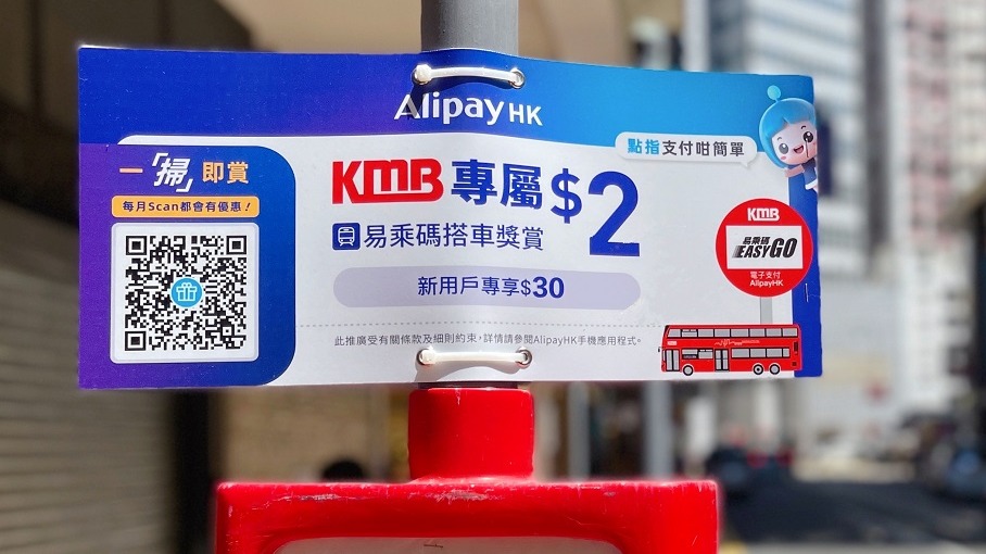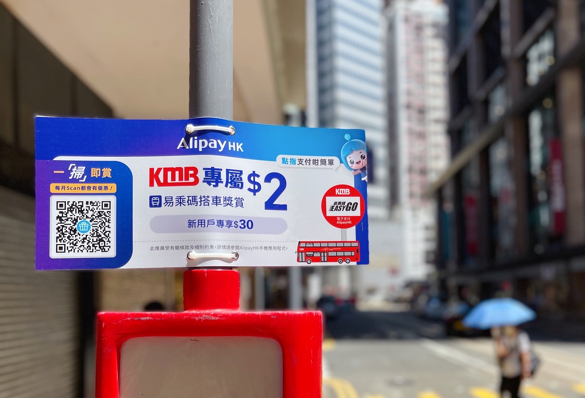 大公文匯全媒體報道,第二階段消費券現已開始接受登記。九巴今日(28日)宣布,與AlipayHK推出「勁賞掃」九巴車資減免活動,由即日起,乘客掃瞄全港800支九巴巴士站柱宣傳品二維碼,即可領取2張價值1元的九巴電子禮券,於下次乘搭九巴時,使用AlipayHK易乘碼支付車資,每程將自動扣減1元車資。