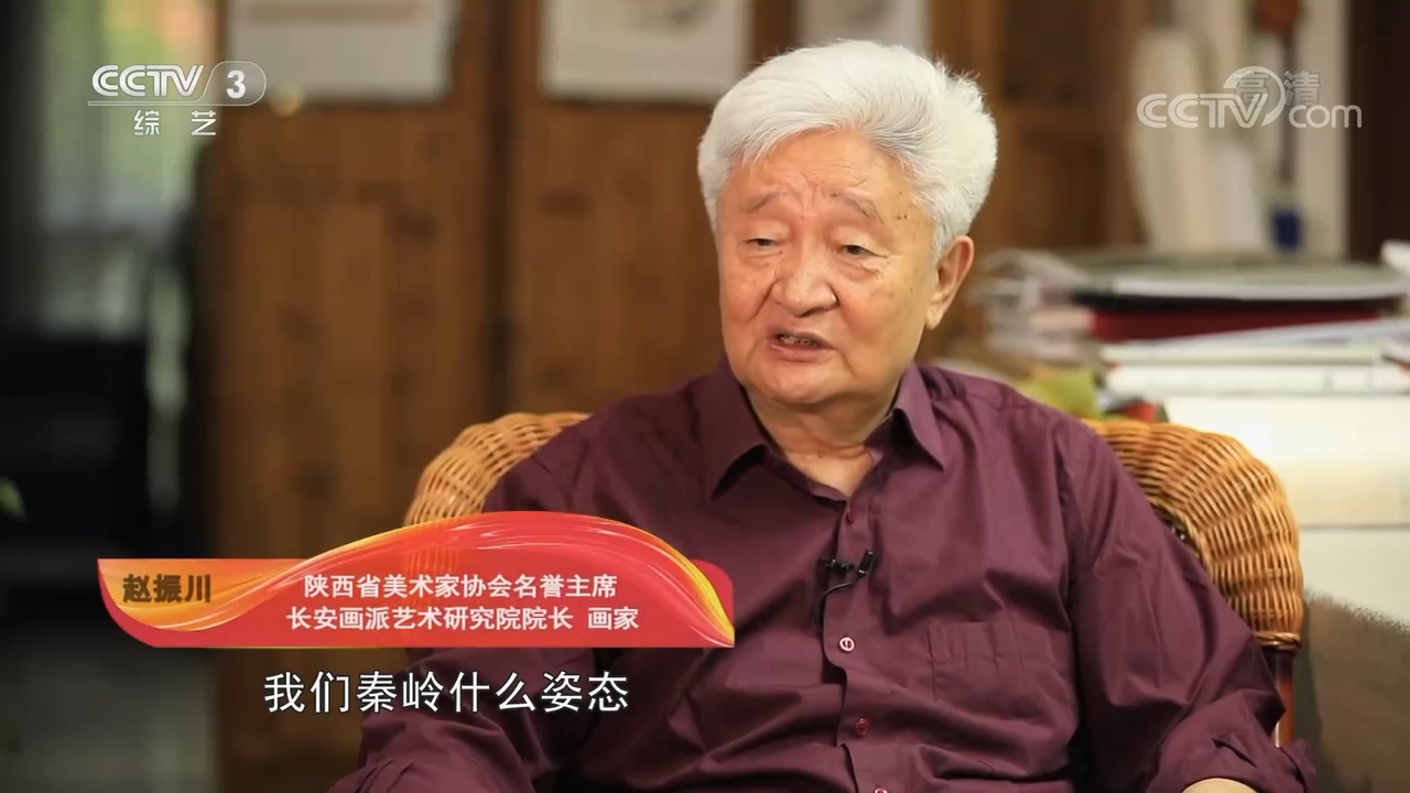 陝西省美術家協會名譽主席 長安畫派藝術研究院院長 畫家 趙振川:秦嶺在我們心裏都是一個很神聖的地方,我們秦嶺什麼姿態?洶湧的姿態、壯闊的姿態、蒼茫的姿態,又是秀麗的姿態,但是它的蒼茫成分、它的雄壯成分,遠遠大於它的秀麗,這是我們北方山水所特有的特質。
