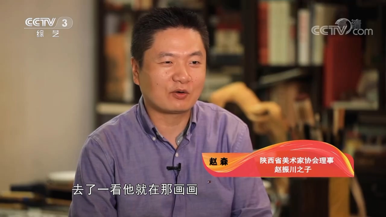 陝西省美術家協會理事 趙振川之子 趙森:記得我小時候叫他吃飯,叫很多次他都不答應,去了一看他就在那畫畫,很痴迷地畫畫,幾十年如一日。後來我從事專業繪畫以後,他也要求我不要有休息日。