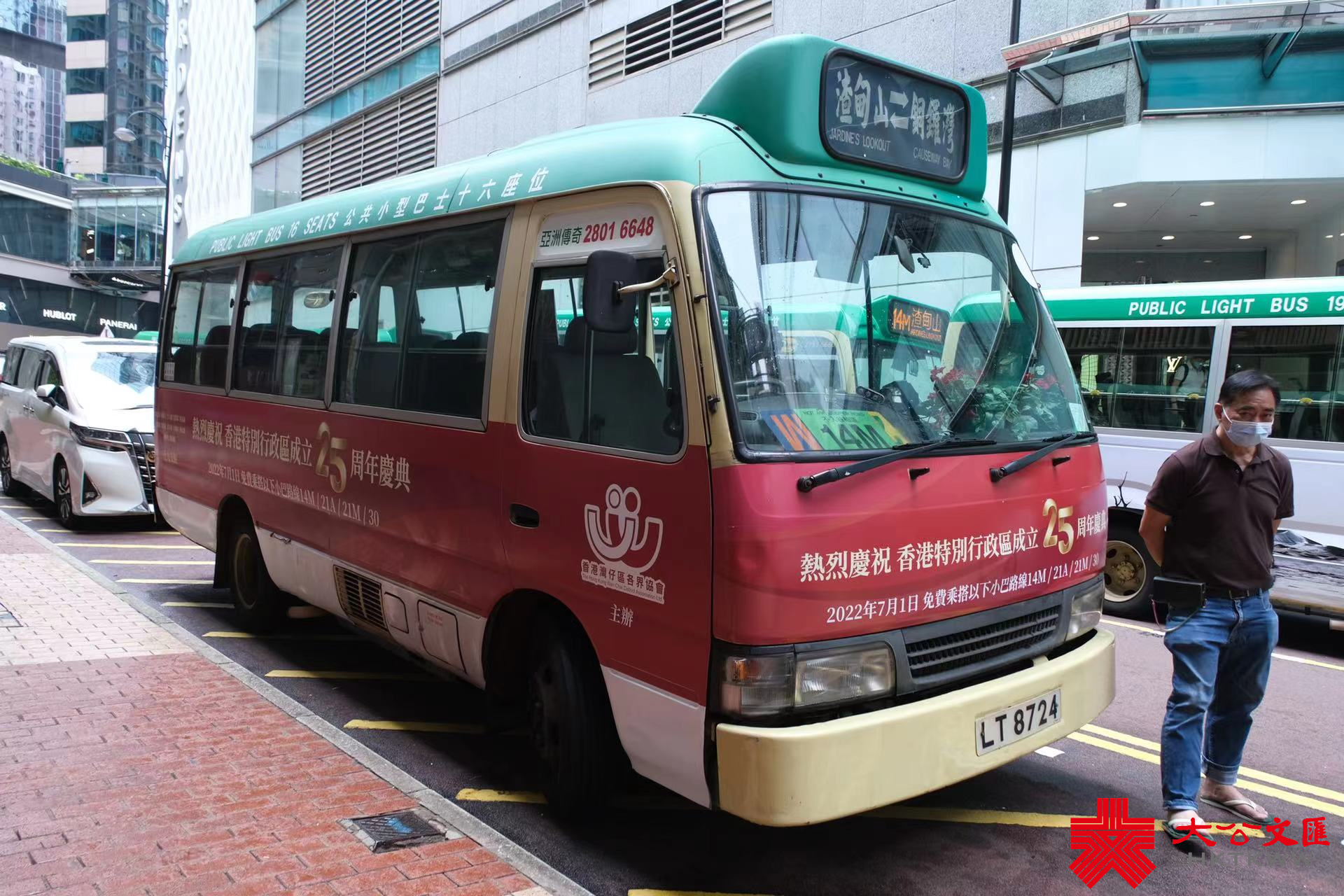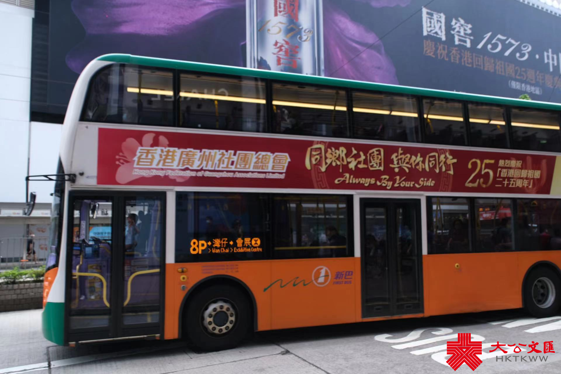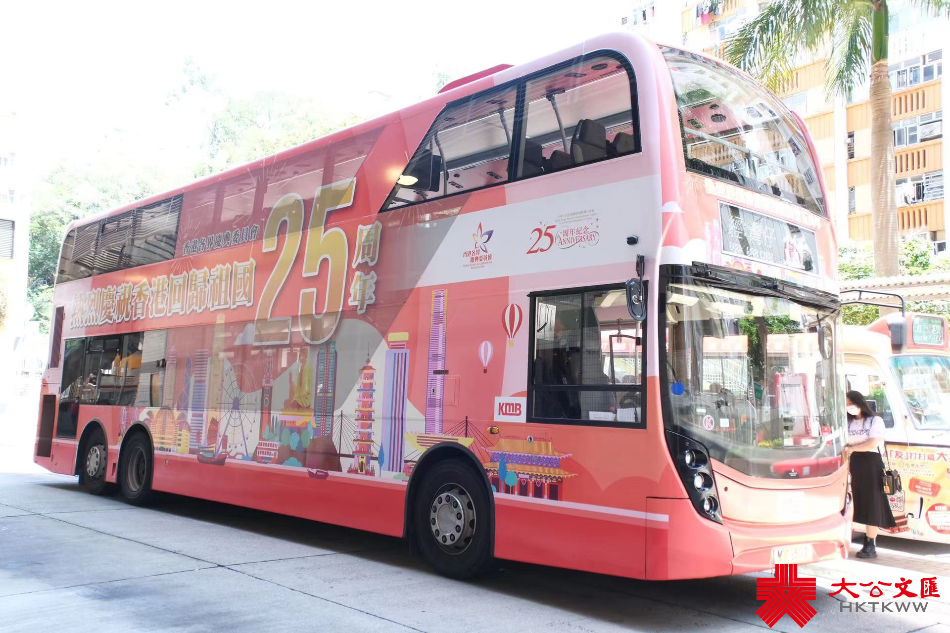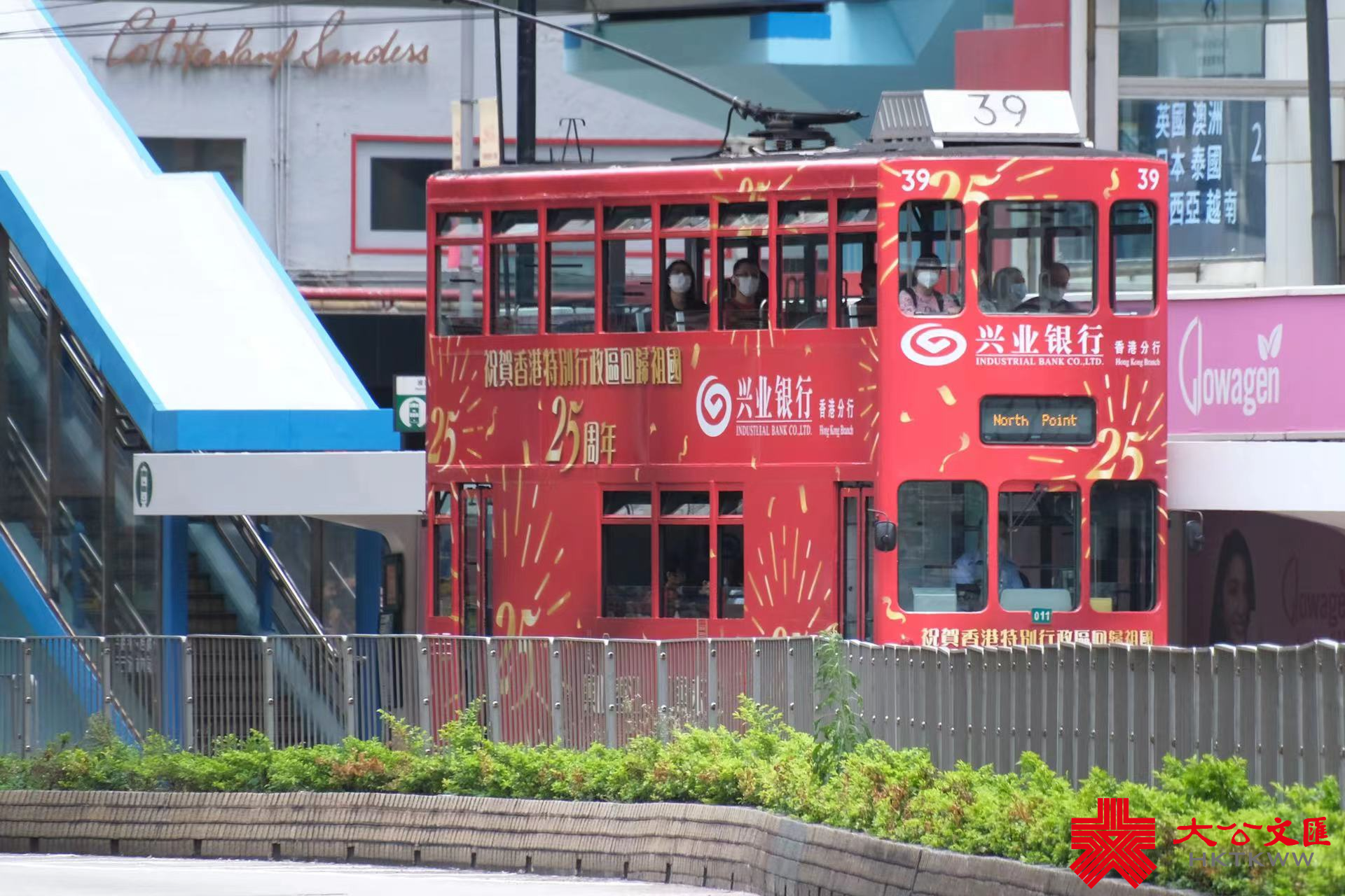 大公文匯全媒體報道,明天是香港回歸祖國25周年紀念日,港島九龍等多地的公共交通工具上裝飾了「同心慶回歸 同行創未來」的標語,穿行在大街小巷,全港各地慶祝氣氛日趨濃烈。