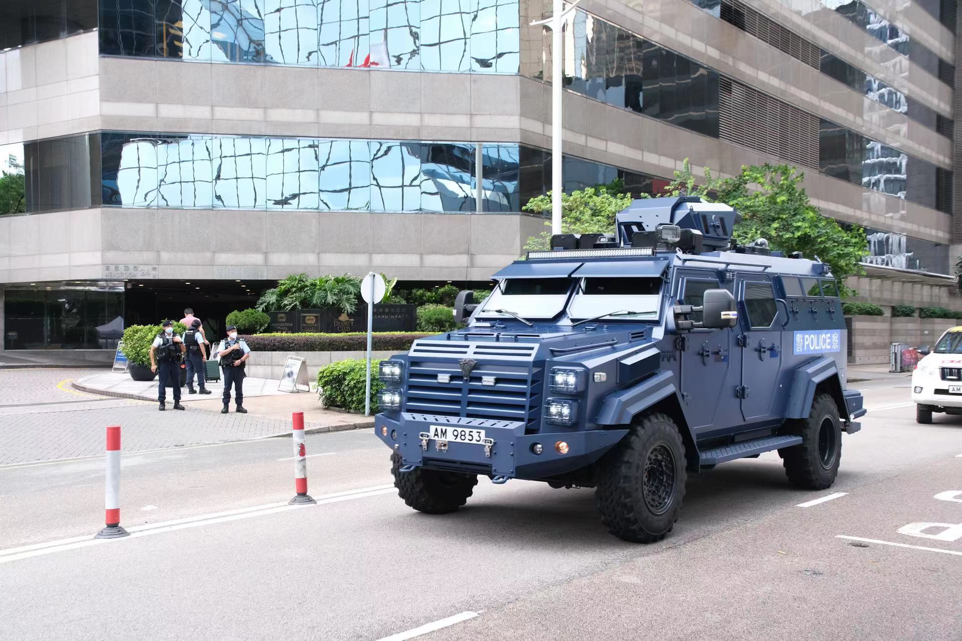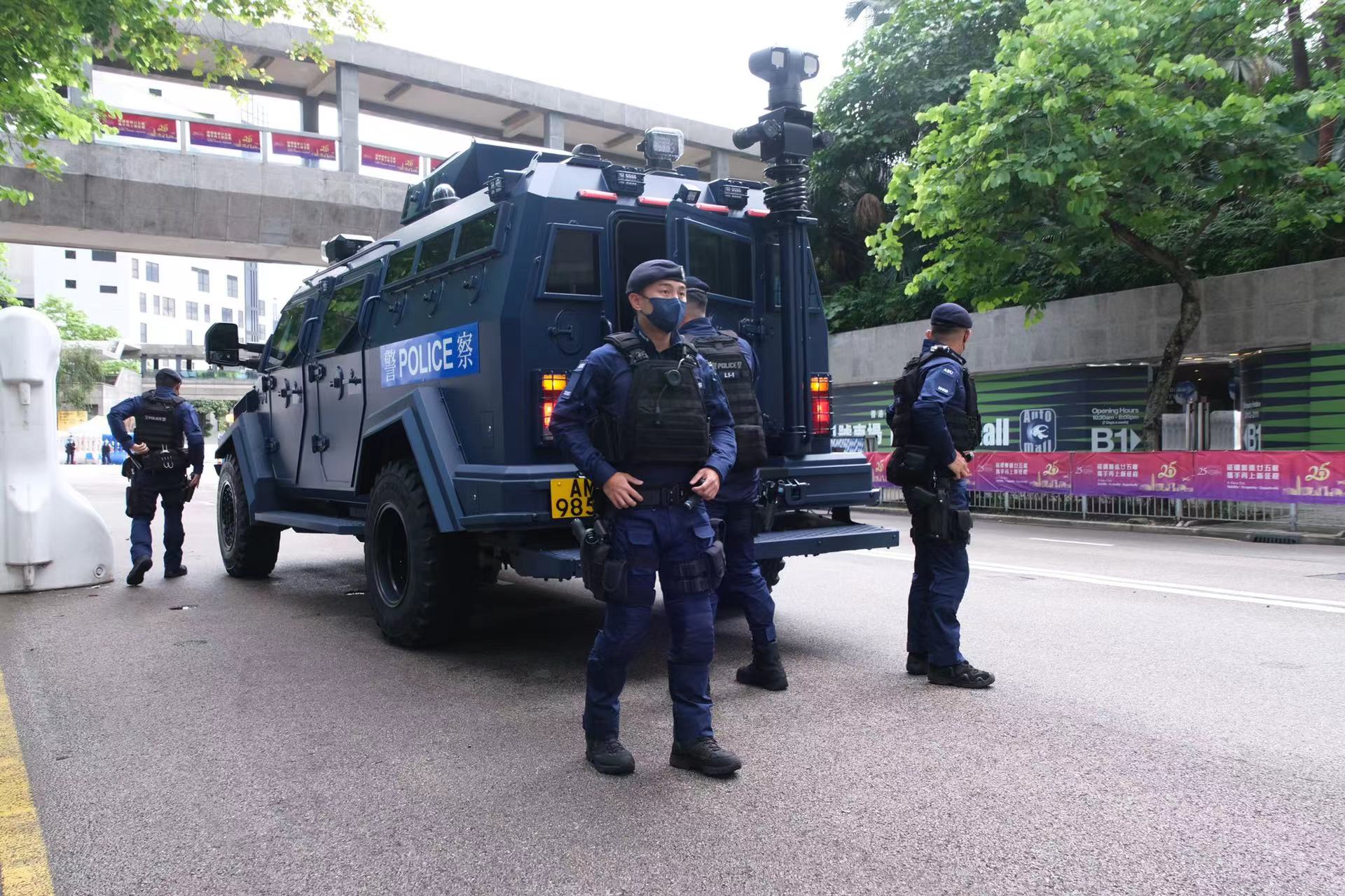 大公文匯全媒體報道,慶祝香港回歸祖國25周年大會暨香港特別行政區第六屆政府就職典禮將於明日(7月1日)舉行。警方早前表示,將安排適當警力確保七一相關活動順利及有秩序地進行。在灣仔會展中心一帶,今日(30日)有多名機動部隊警員聯同反恐特勤隊人員駐守。反恐特勤隊人員已換上安全性更高的新制服執勤,而早前警方購入由內地製造的「劍齒虎」裝甲車亦出動,在場協助巡邏。