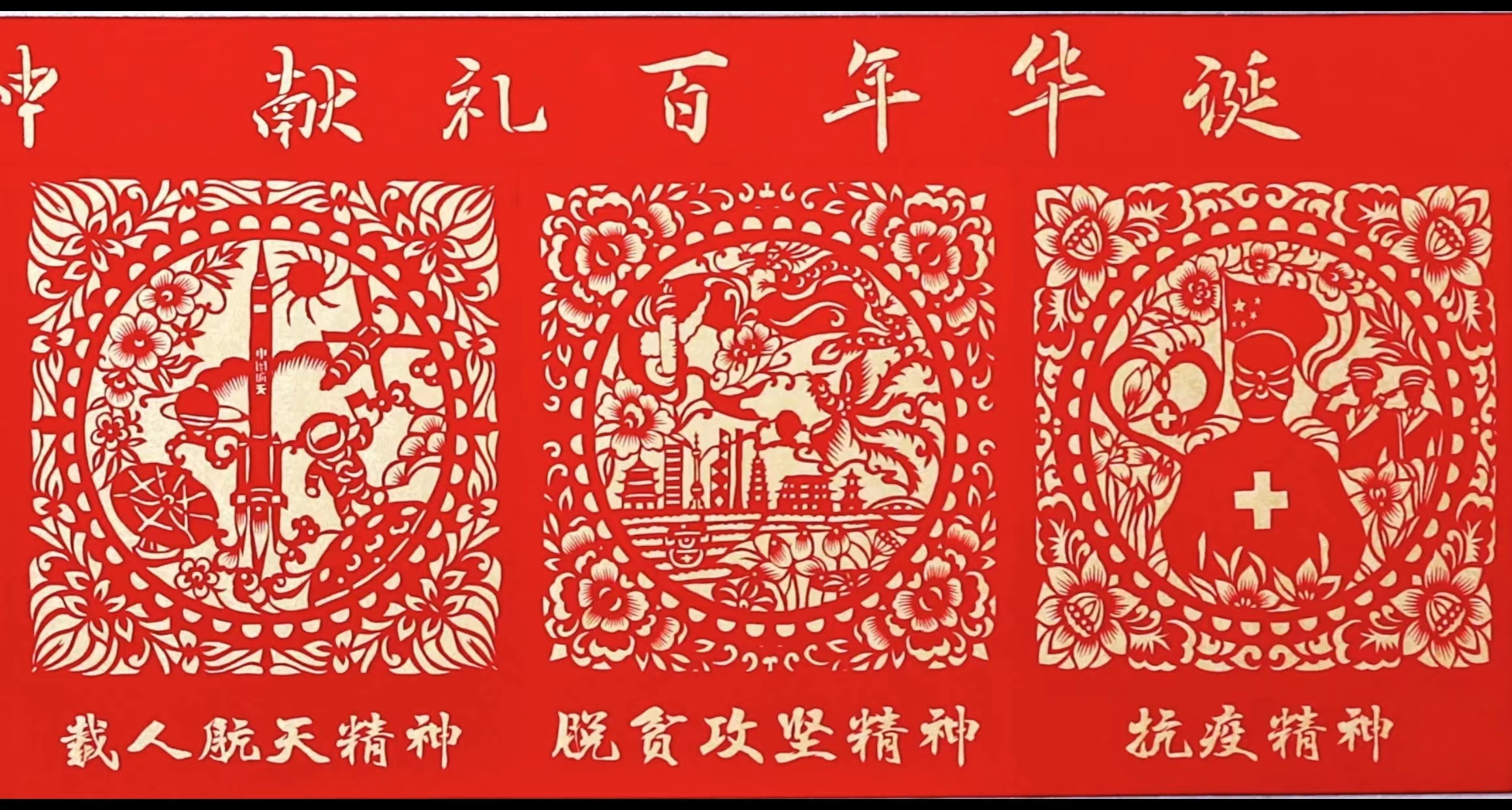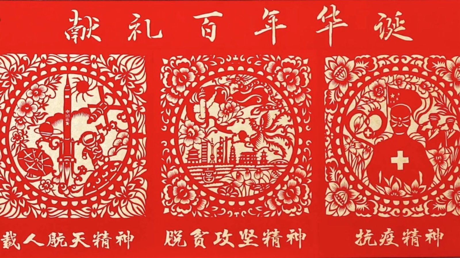 據暢楊楊介紹,該作品既分為多個獨立故事,又一氣呵成、形成有機整體。整體來看,紅色剪紙與紅色精神內核統一,構圖採用對稱、正方形、四角團花基本結構,紋飾圖樣豐富、鏤空剪刻盡顯意蘊,展示了紅色精神作為實現民族復興的精神動力、中國共產黨人的精神家園,所具有的恢宏深邃的精神文化魅力。