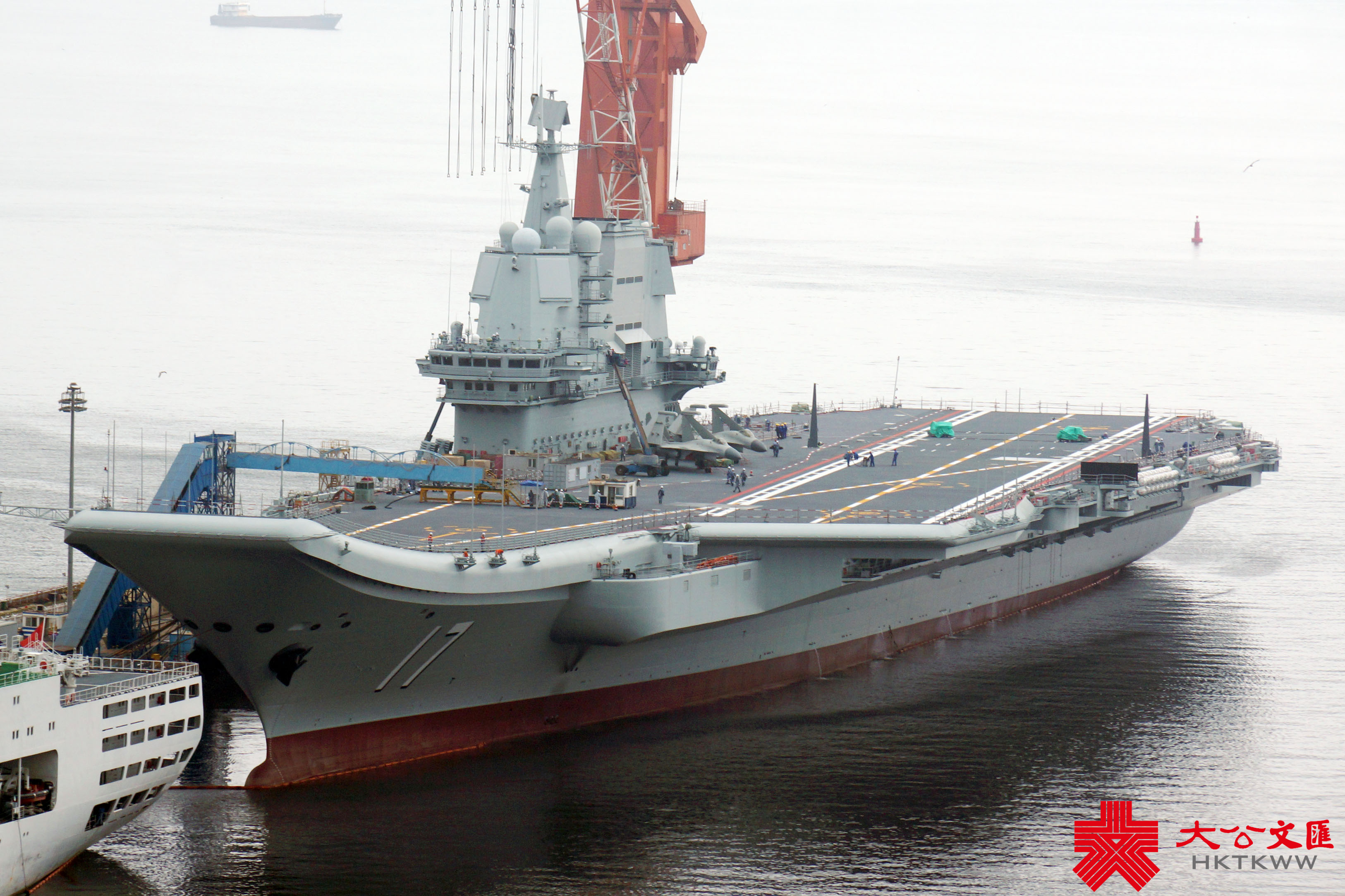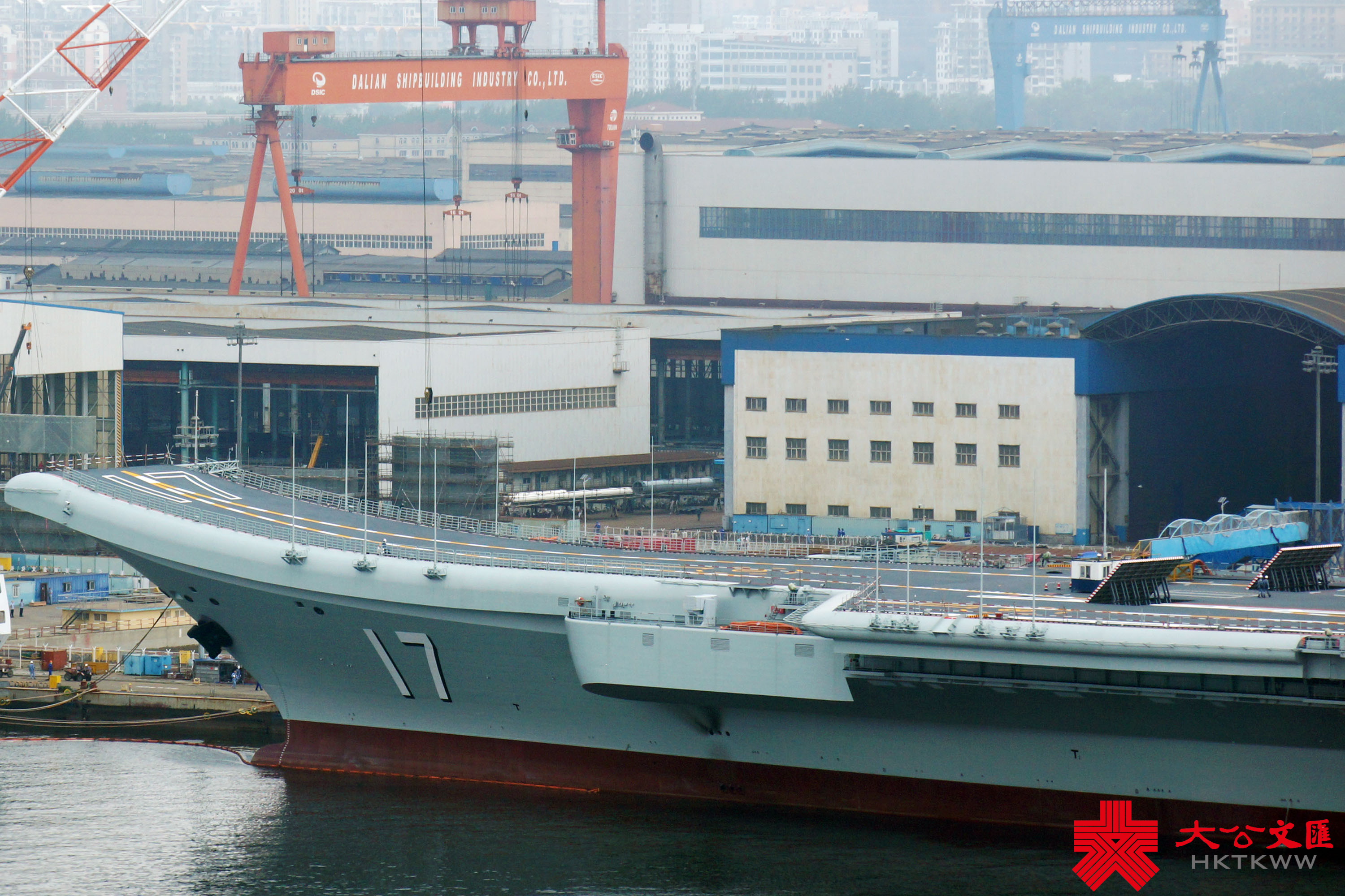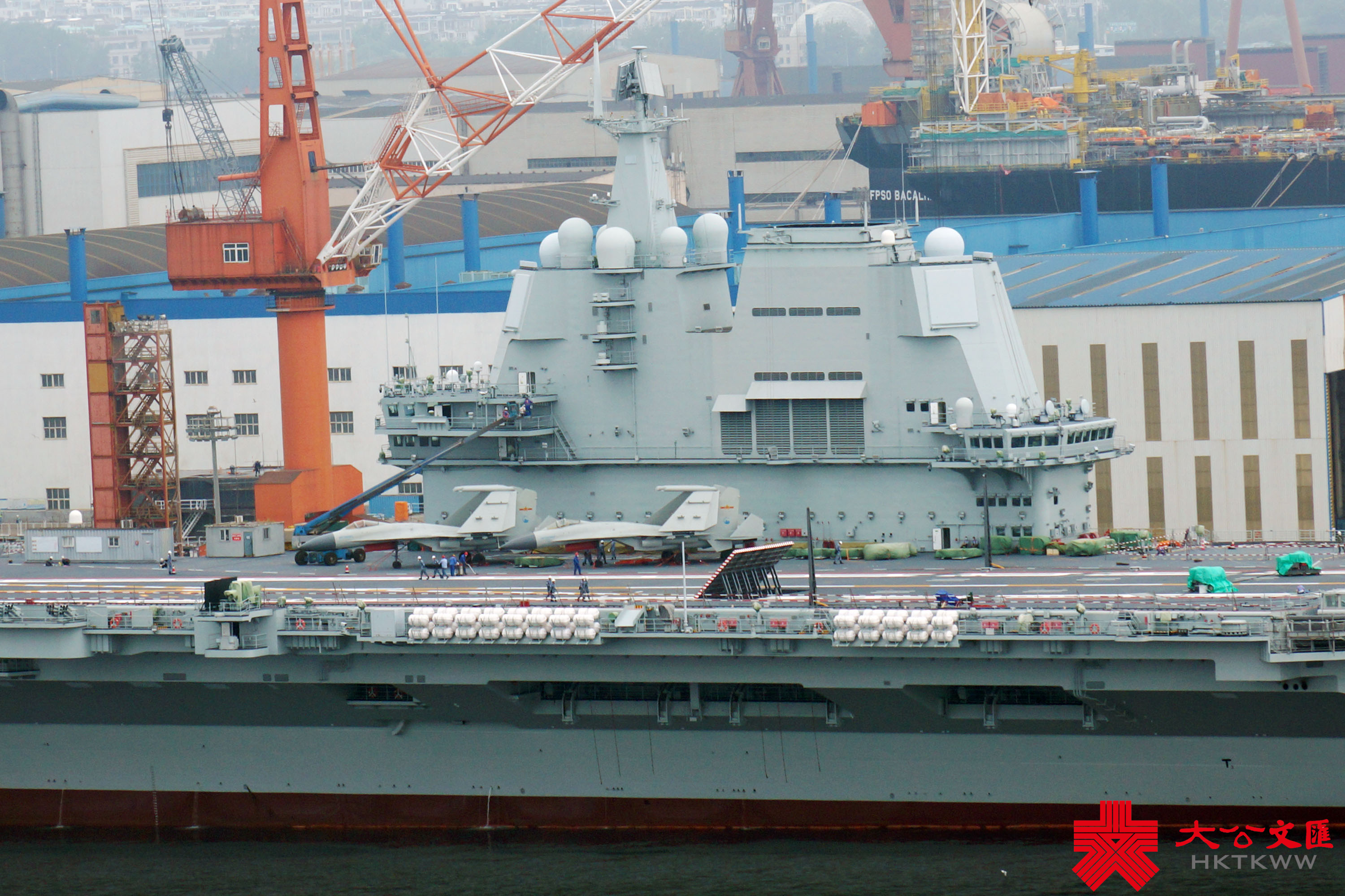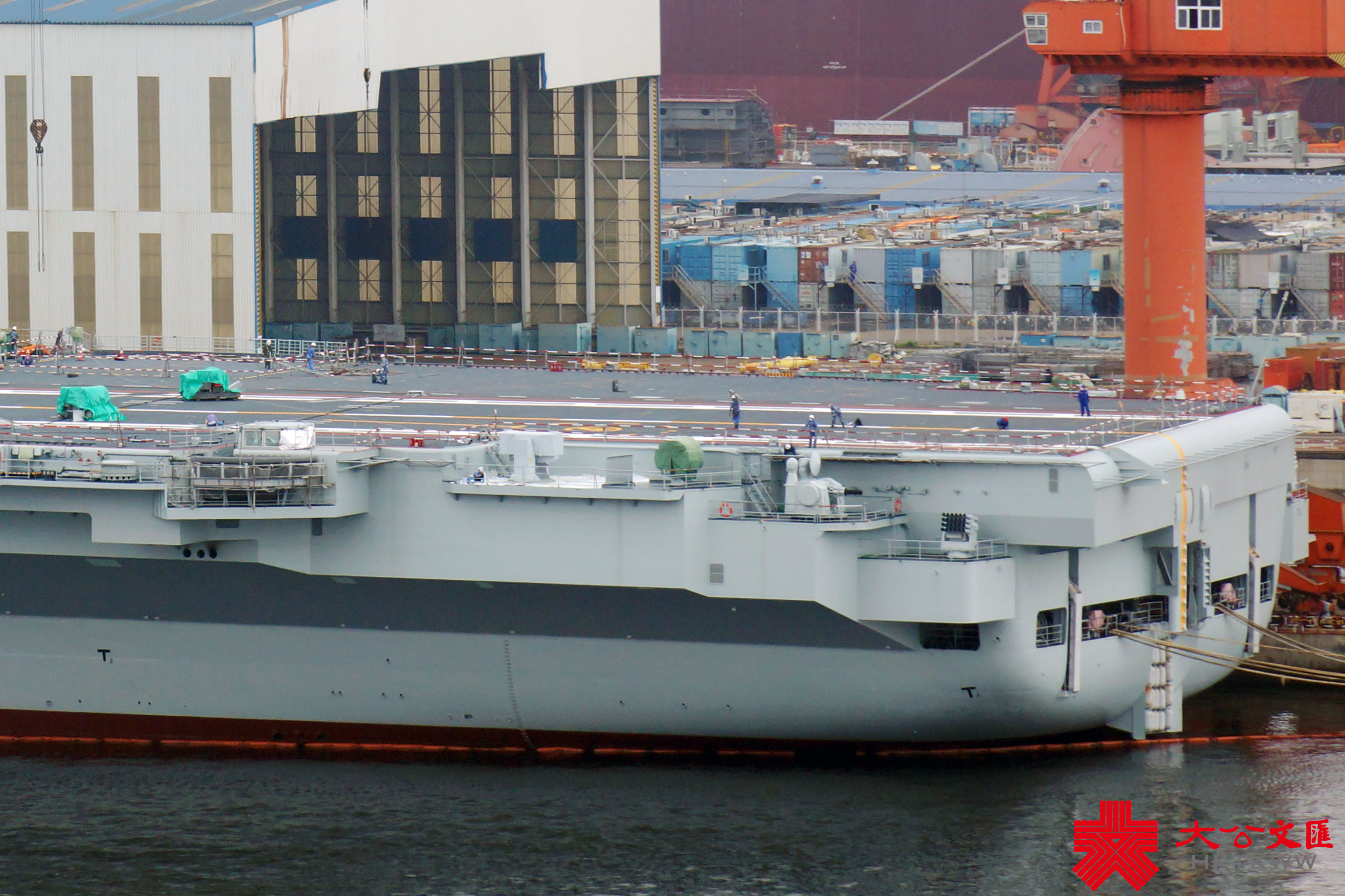 (大公文匯網記者 宋偉)7月1日,正在大連造船廠進行首次計劃內可用性提升維護的山東艦,已完成甲板塗層重鋪、劃線及艦底清理刷漆等維護工作,移出船塢。中國首艘901型綜合補給艦呼倫湖艦(舷號901)抵達船廠,在山東艦尾一側靠泊,雙艦再度「同框」。