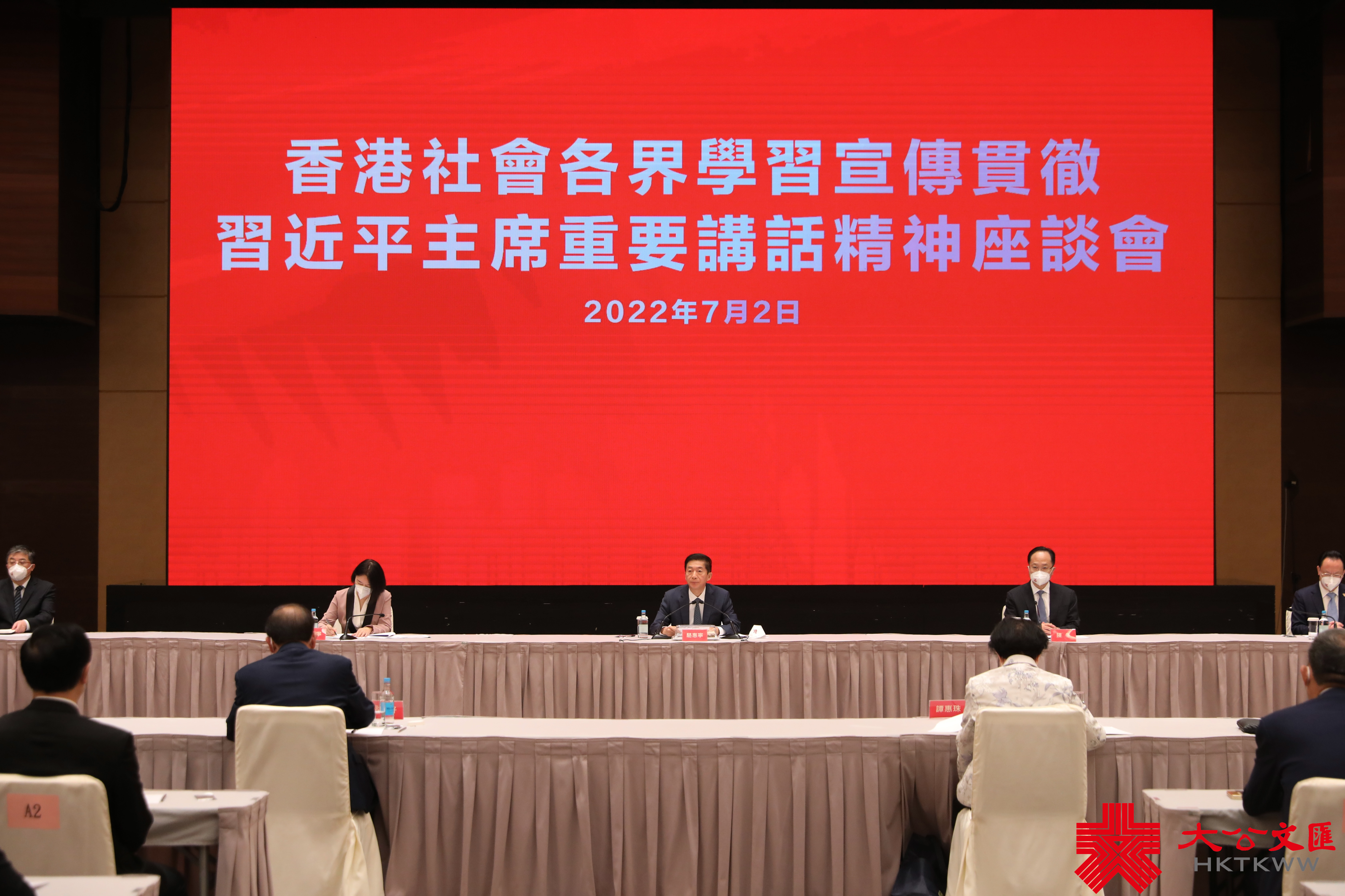 大公文匯全媒體報道,6月30日至7月1日,中共中央總書記、國家主席、中央軍委主席習近平蒞臨香港,出席慶祝香港回歸祖國25周年大會暨香港特別行政區第六屆政府就職典禮,視察香港,並發表重要講話。「香港社會各界學習宣傳貫徹習近平主席重要講話精神座談會」於今日(2日)上午在香港會展中心舉行,香港中聯辦主任駱惠寧在座談會上講話。