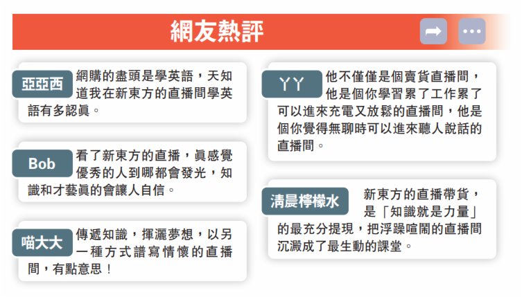 例如,在講解牛排的直播中,他一邊向網友們介紹牛肉產品的含量與成分,一邊向網友們傳達英語的知識點,並提醒網友們趕緊記下來─「24 bags of seasonings,調料叫seasonings」「唯一的配料就是牛肉,配料就是ingredient」不少網友直言,「這是我呆過最久的直播間,不為別的,就想免費學幾個單詞。」「我剛進直播間,以為是新東方在賣課,看了一會兒才發現是在賣貨,太上頭了。」