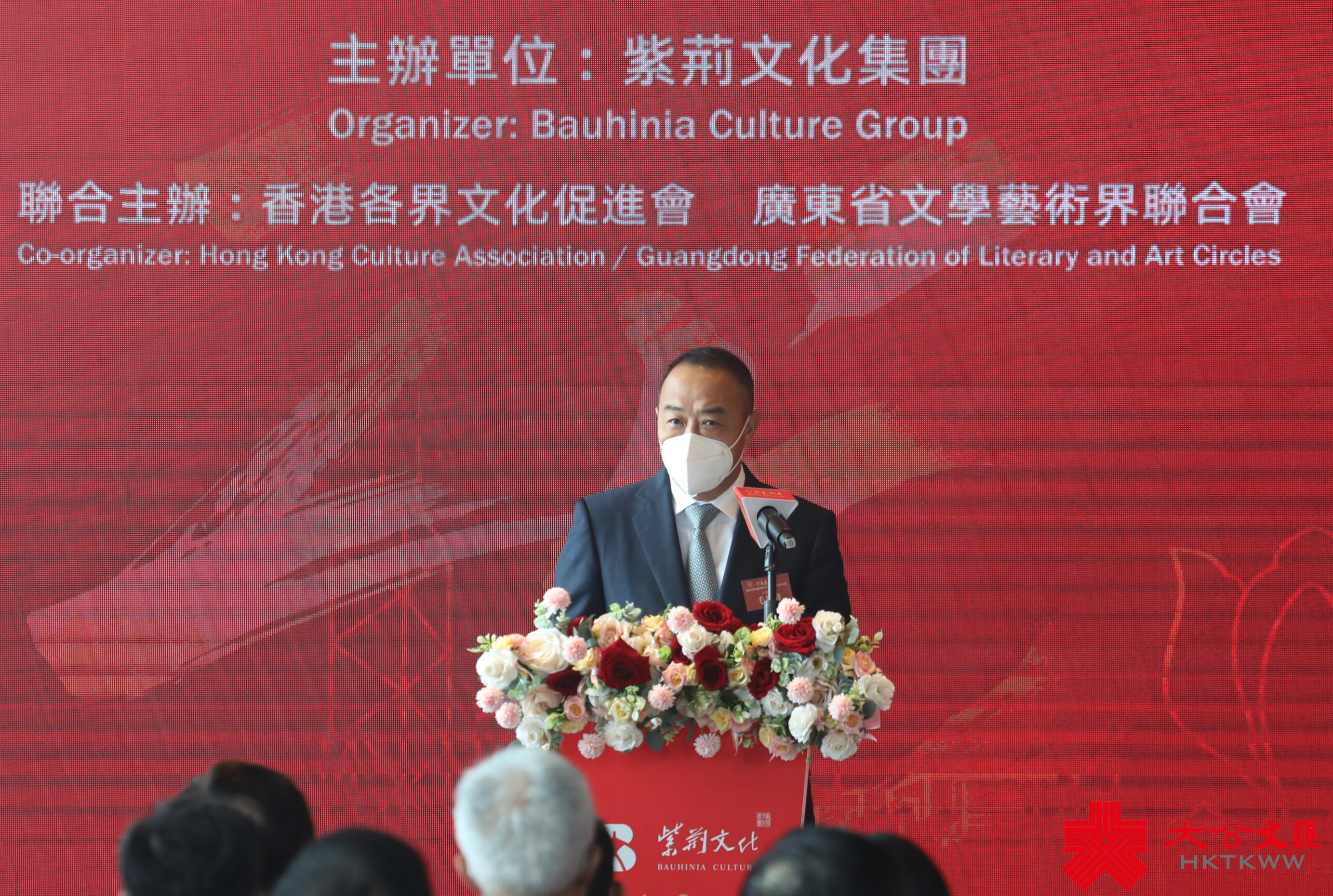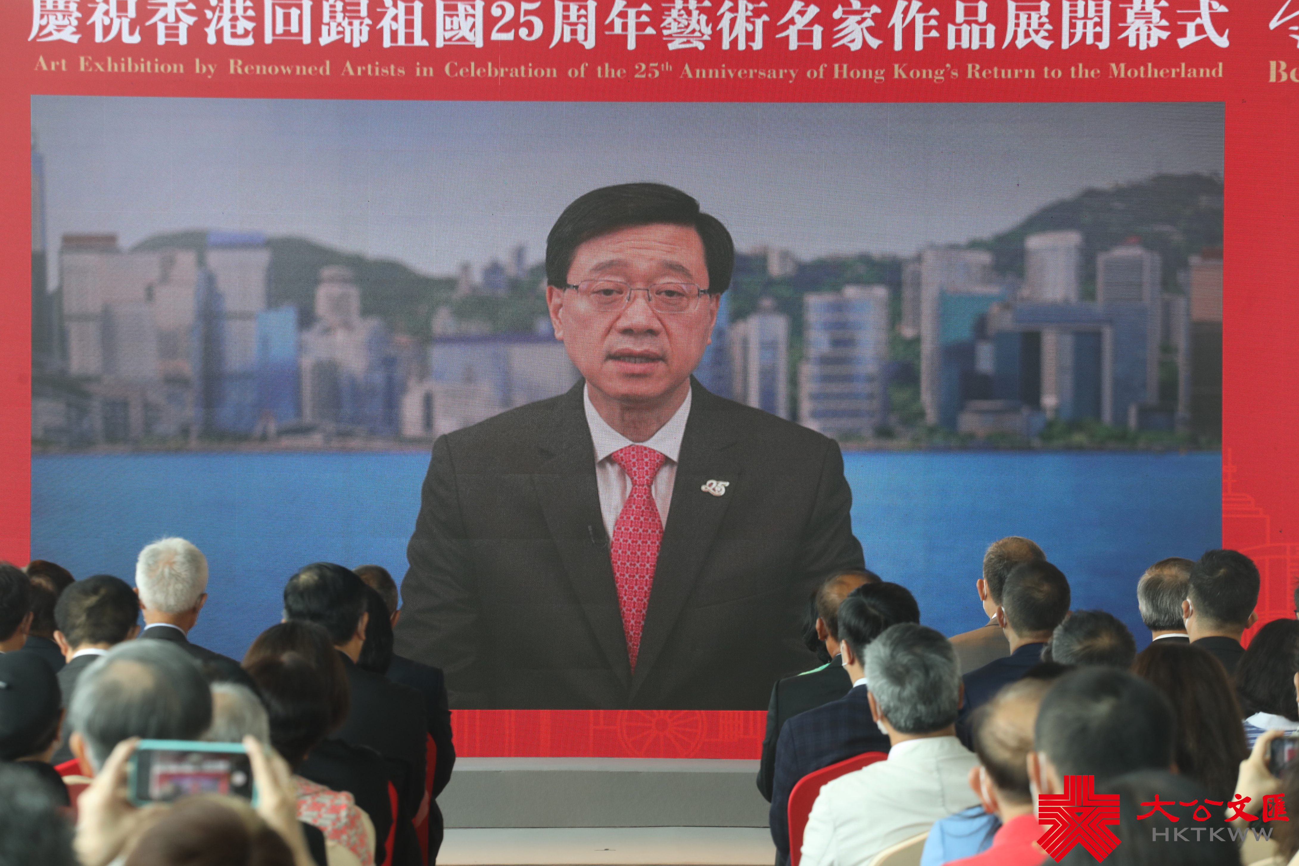 行政長官李家超今日在開幕式上通過視頻致辭,他感謝紫荊文化集團在全港同慶的重要時刻舉辦此次展覽,給香港市民帶來一場豐盛的文化藝術之旅。他表示,香港自回歸祖國以來,在國家的重視和支持下,成功落實「一國兩制」,在社會和經濟發展方面都取得驕人的成就。國家「十四五」規劃明確支持香港發展成為中外文化藝術交流中心,為香港的文化事業創造出更廣闊的發展空間。