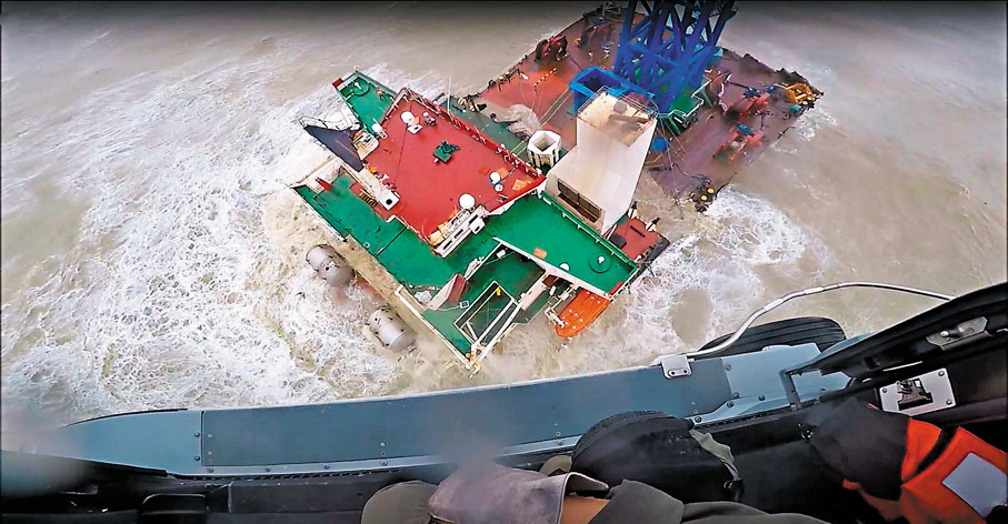 (香港文匯報記者 蕭景源)內地工程船「福景001」前日(2日)在香港西南面約300公里海域遭遇颱風「暹芭」吹襲,不幸斷為兩截沉沒。香港特區政府飛行服務隊在接獲相關報告後第一時間全力援救,其間克服重重困難,包括強風巨浪和現場發電場險阻,成功救起3名船員,惜另外27人至今仍然失蹤,政府飛行服務隊昨續出動定翼機擴大搜救範圍。香港特區政府政務司司長陳國基對此次嚴重海難感到傷心,強調會盡最大努力搜救其他失蹤船員;保安局局長鄧炳強亦親到政府飛行服務隊總部探訪參與救援行動的人員,讚揚他們冒着生命危險救急扶危的精神和卓越表現。